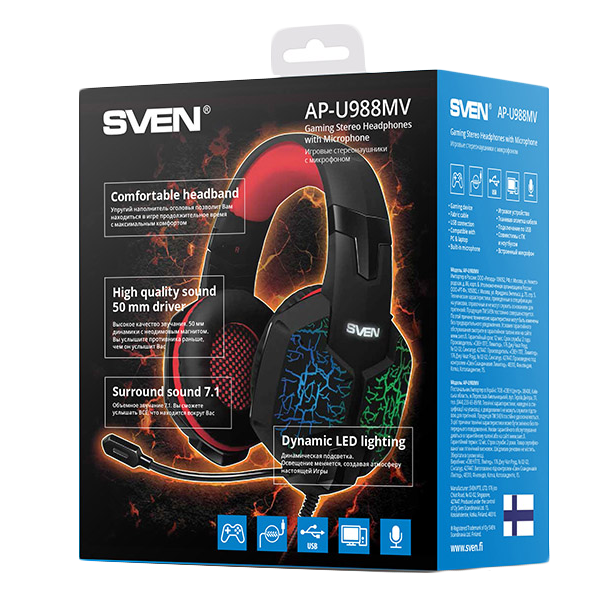 Headphones with microphone SVEN AP-U988MV black-red, SV-014780