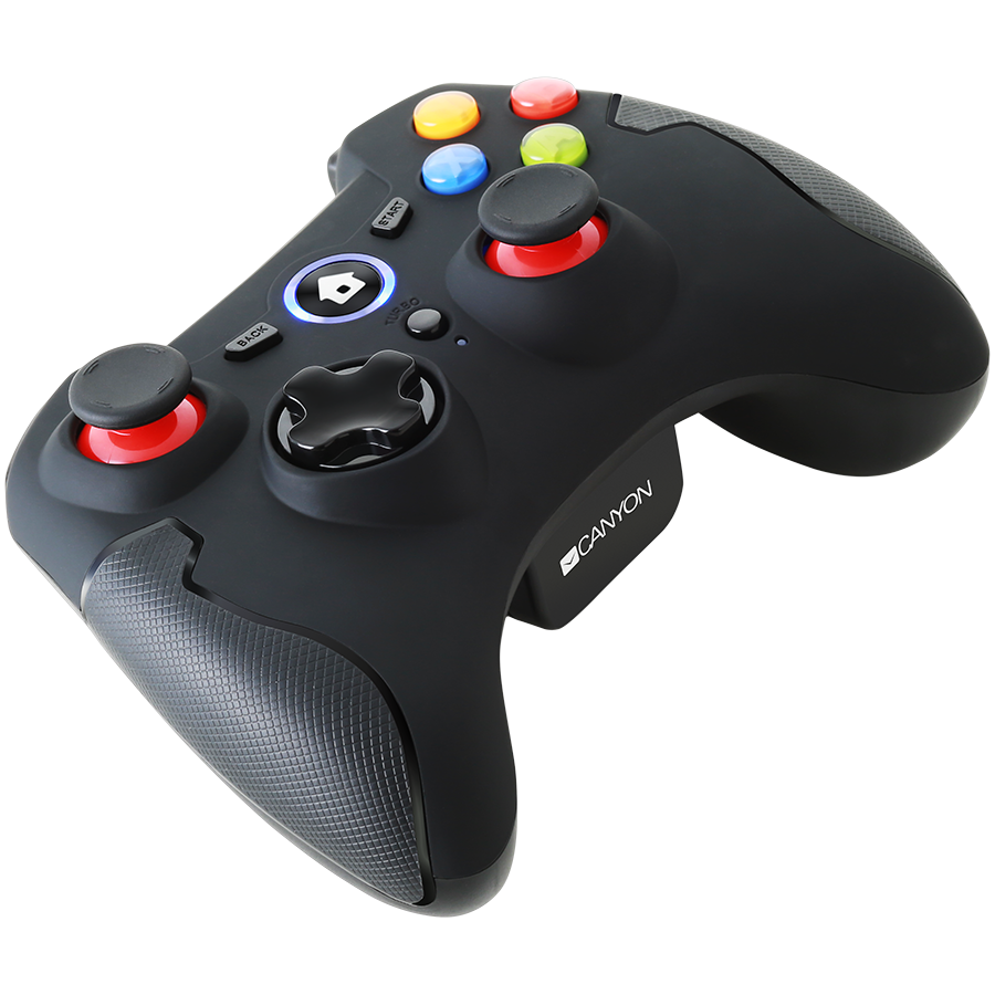 CANYON GP-W6, 2.4G Wireless Controller with Dual Motor, Rubber coating, 2PCS AA Alkaline battery ,support PC X-input mode/D-input mode, PS3, Android/nano size dongle,black