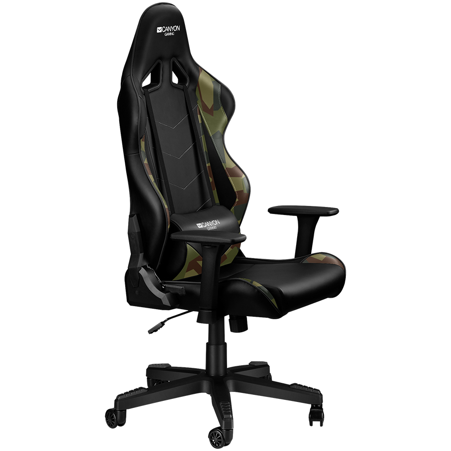 CANYON Argama GС-4AO, Gaming chair, PU leather, Original foam and Cold molded foam, Metal Frame, Top gun mechanism, 90-165 dgree, 3D armrest, Class 4 gas lift, Nylon 5 Stars Base, 60mm PU caster, Black+camouflage pattern