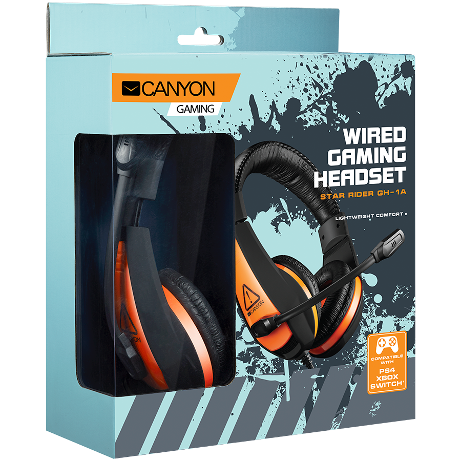 CANYON Star Raider GH-1A, Gaming headset 3.5mm jack with adjustable microphone and volume control, with 2in1 3.5mm adapter, cable 2M, Black, 0.23kg