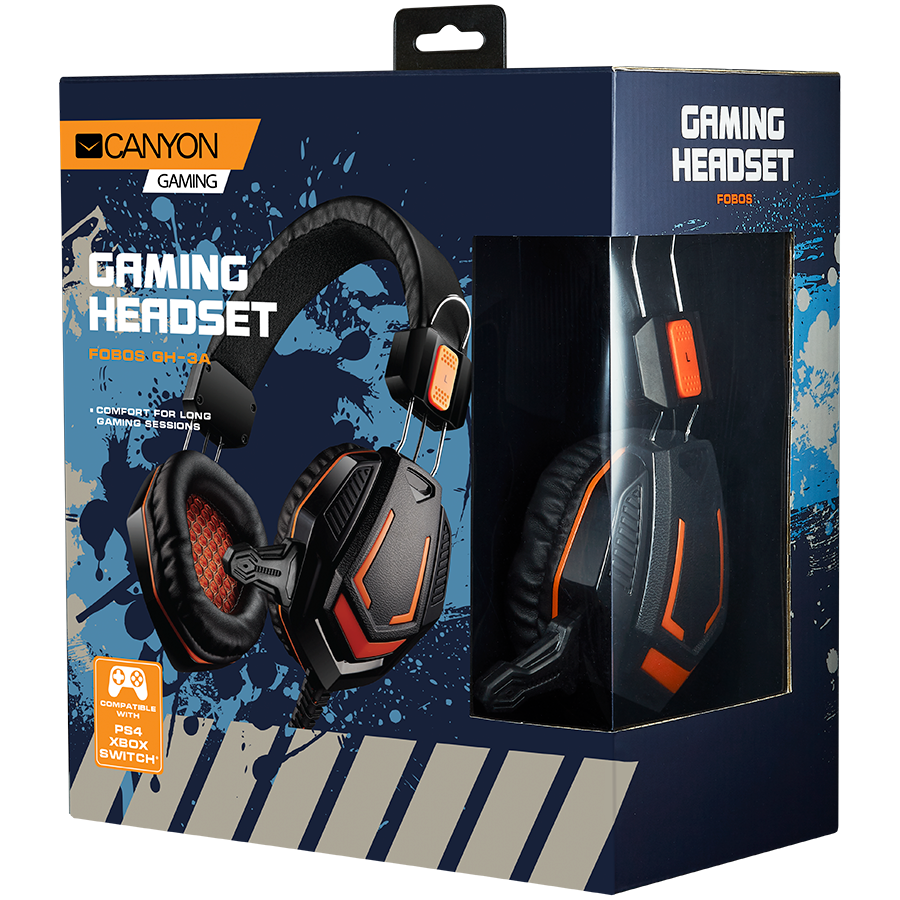 CANYON Fobos GH-3A, Gaming headset 3.5mm jack with microphone and volume control, with 2in1 3.5mm adapter, cable 2M, Black, 0.36kg