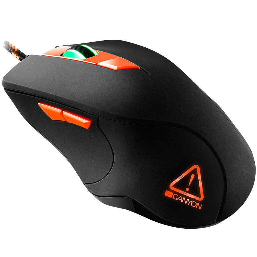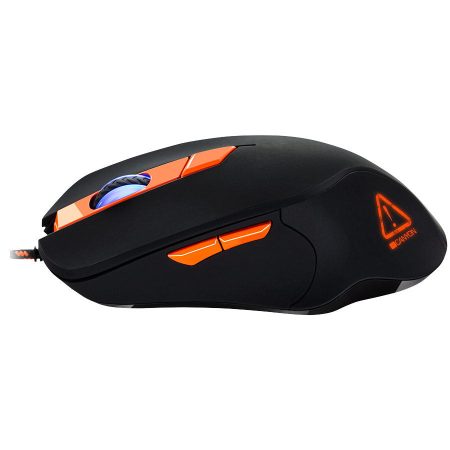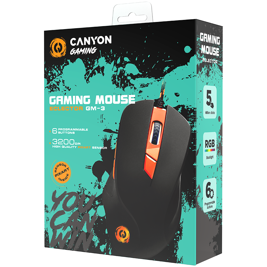 CANYON Eclector GM-3, Wired Gaming Mouse with 6 programmable buttons, Pixart optical sensor, 4 levels of DPI and up to 3200, 5 million times key life, 1.65m Braided USB cable,rubber coating surface and colorful RGB lights, size:130*75*40mm, 140g