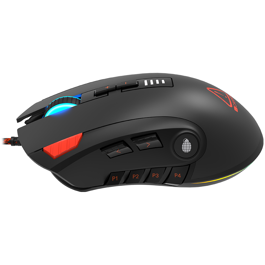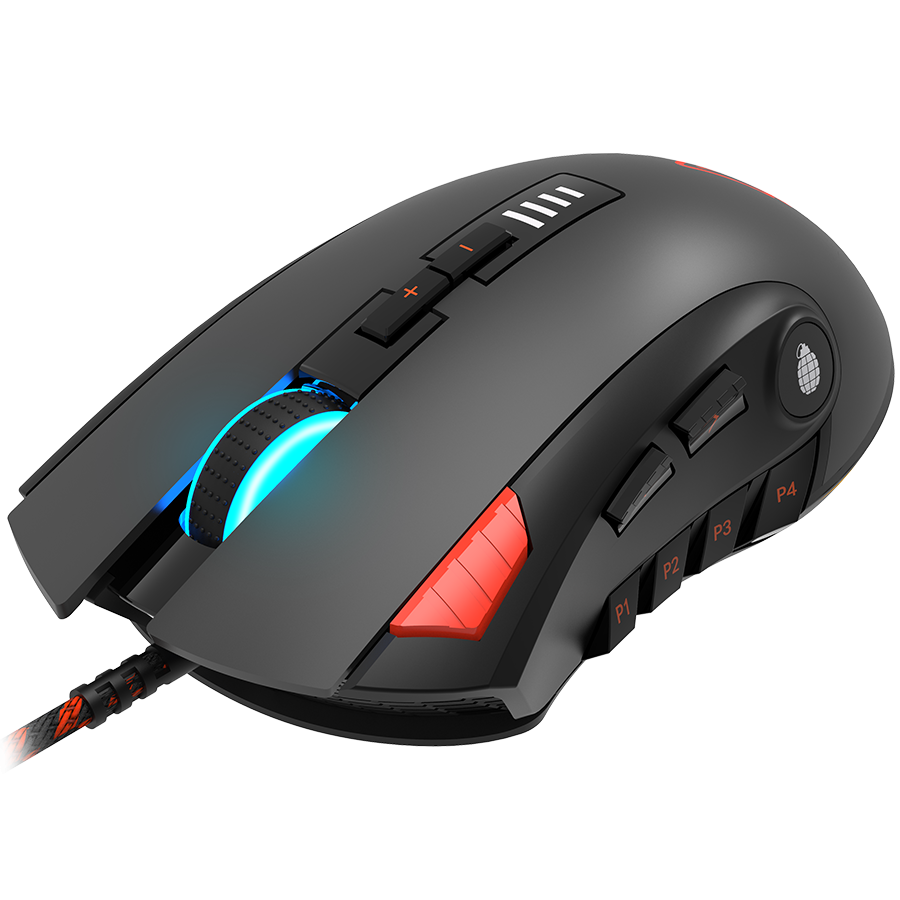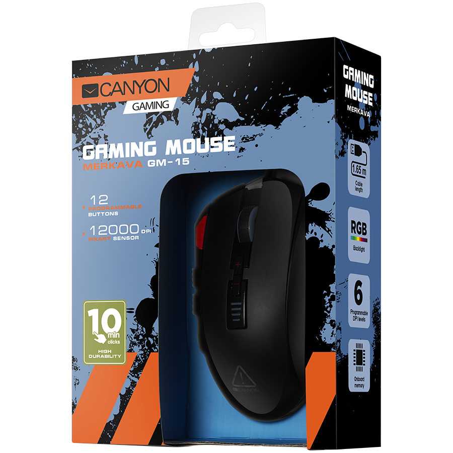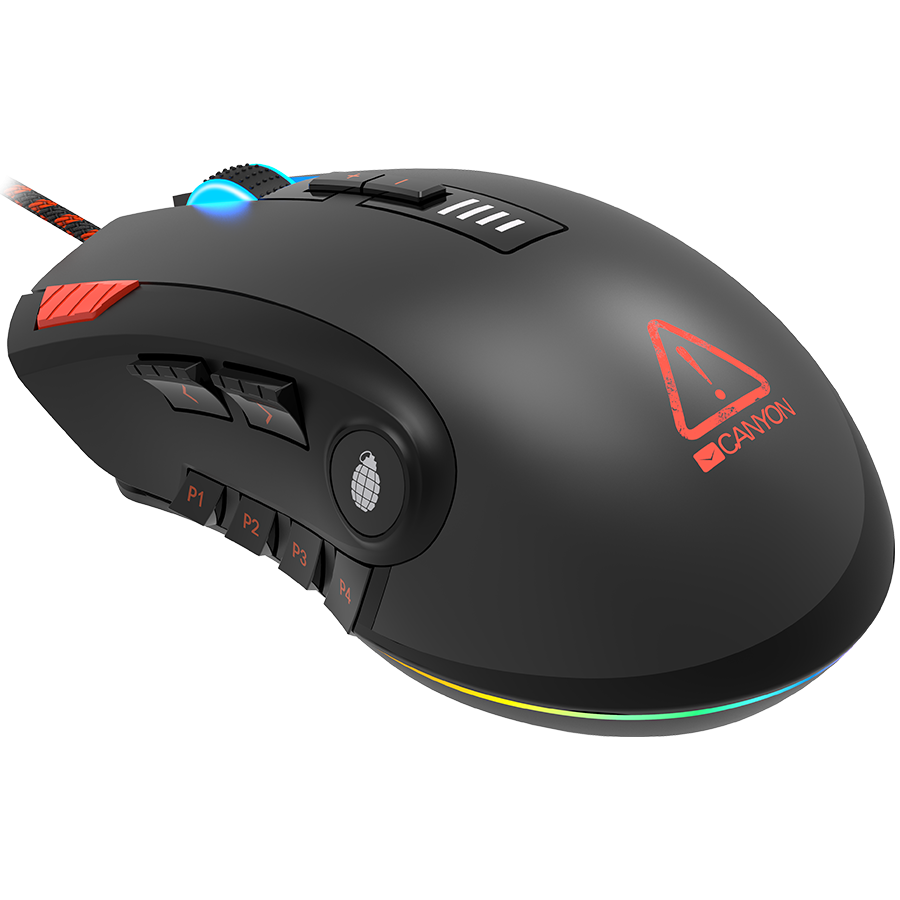 CANYON Merkava GM-15,Gaming Mouse with 12 programmable buttons, Sunplus 6662 optical sensor, 6 levels of DPI and up to 5000, 10 million times key life, 1.8m Braided cable, UPE feet and colorful RGB lights, Black, size:124x79x43.5mm, 148g