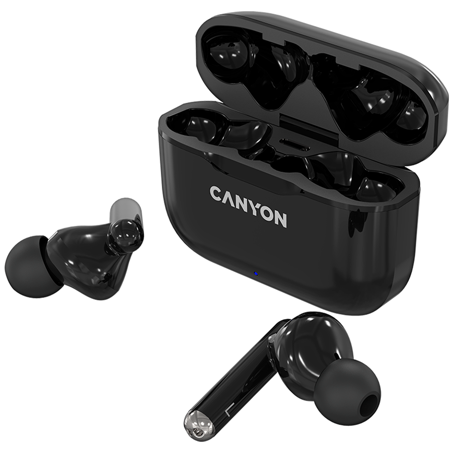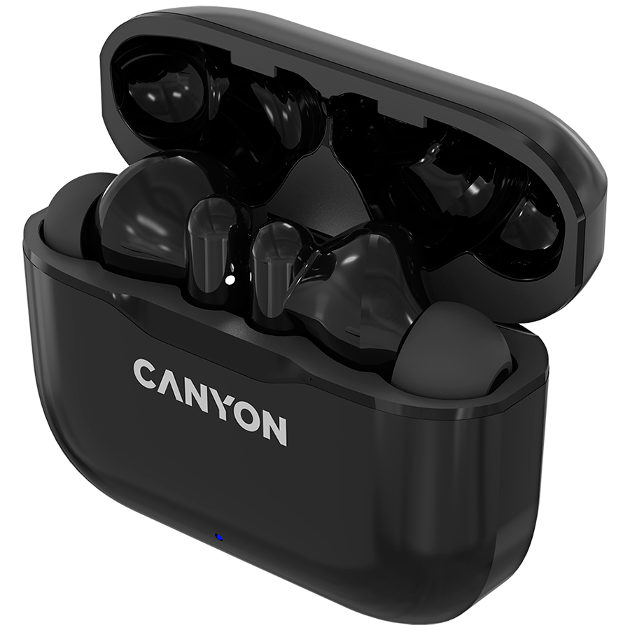CANYON TWS-3, Bluetooth headset, with microphone, BT V5.0, Bluetrum AB5376A2, battery EarBud 40mAh*2+Charging Case 300mAh, cable length 0.3m, 62*22*46mm, 0.046kg, Black
