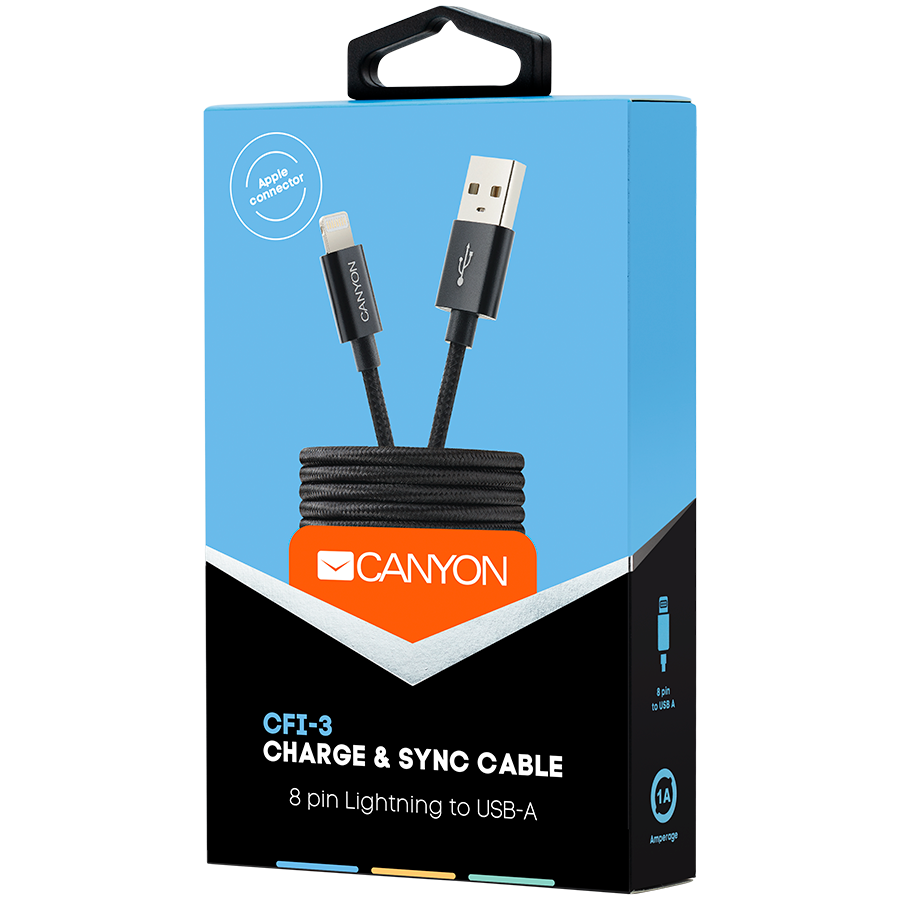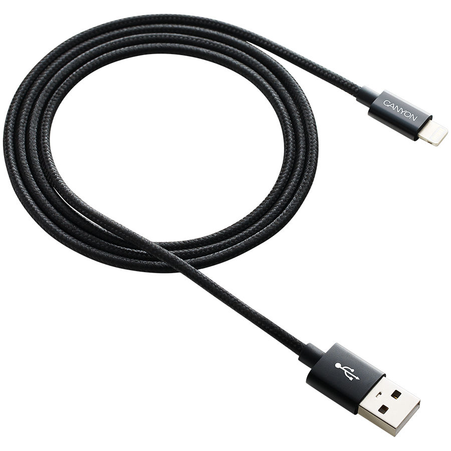 CANYON CFI-3, Lightning USB Cable for Apple, braided, metallic shell, cable length 1m, Black, 14.9*6.8*1000mm, 0.02kg