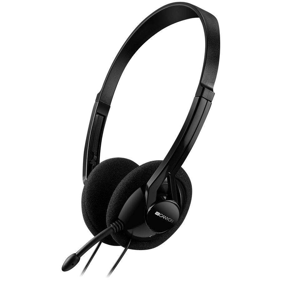 CANYON HS-01 PC headset with microphone, volume control and adjustable headband, cable length 1.8m, Black, 211*134*57mm, 0.079kg