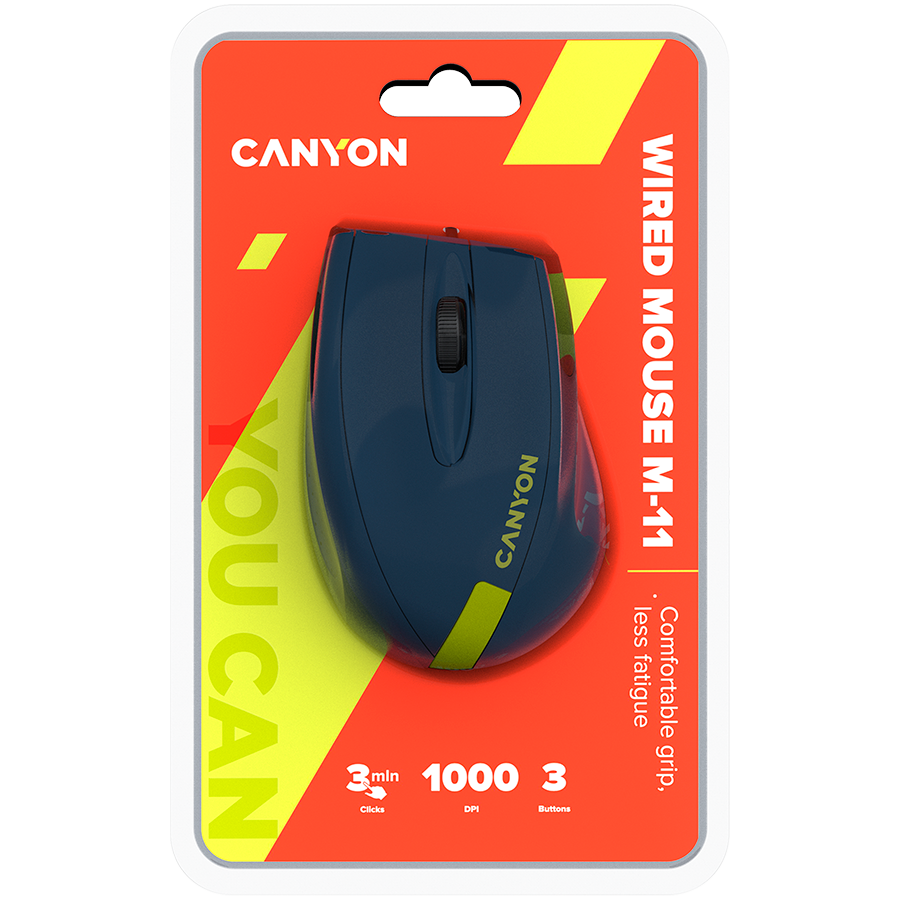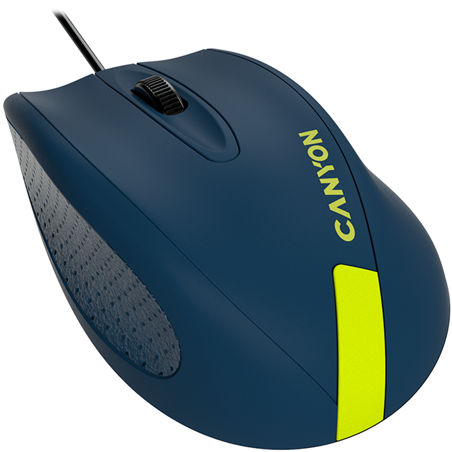 CANYON Wired Optical Mouse with 3 keys, DPI 1000 With 1.5M USB cable,Blue-Yellow,size 68*110*38mm,weight:0.072kg