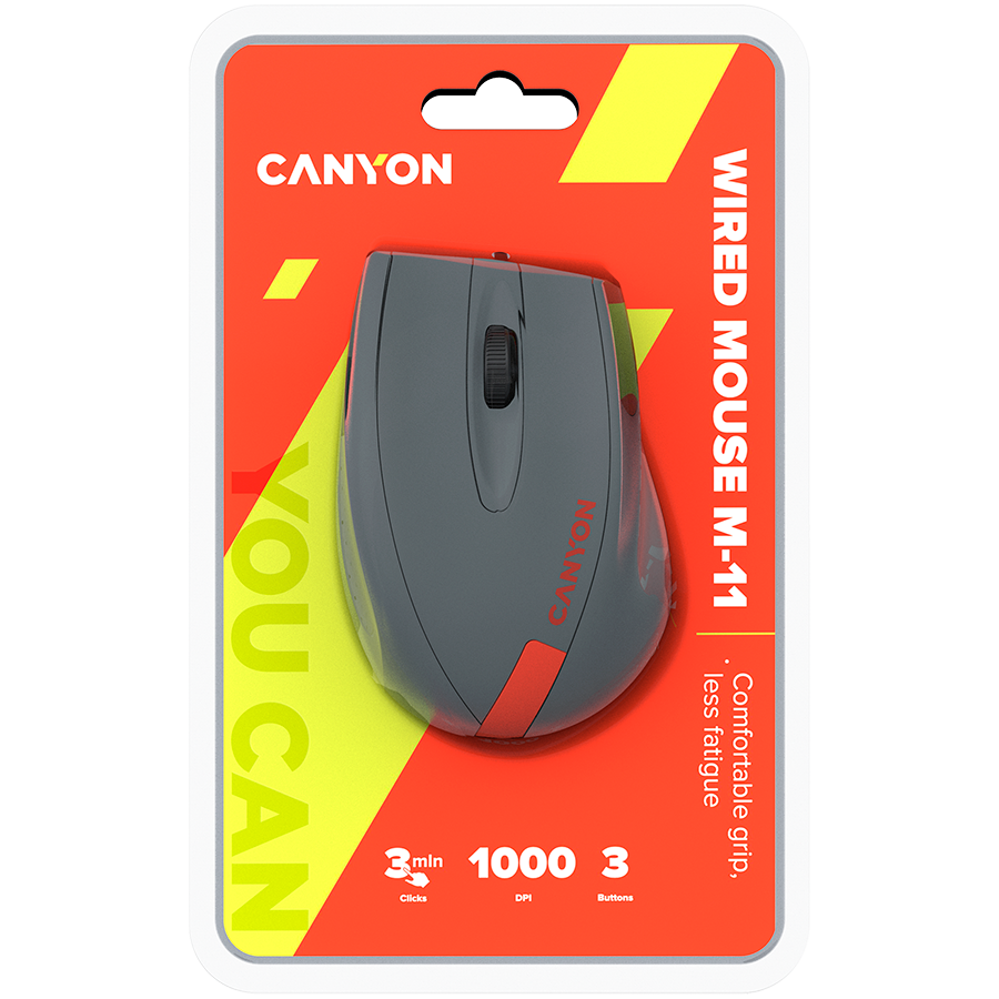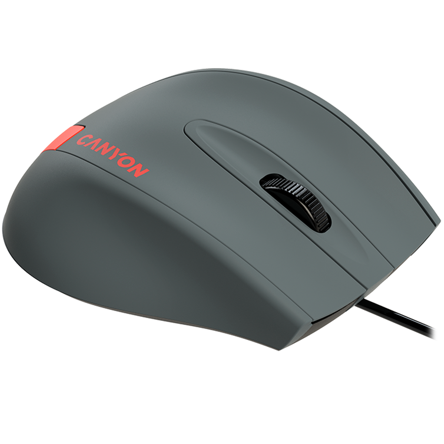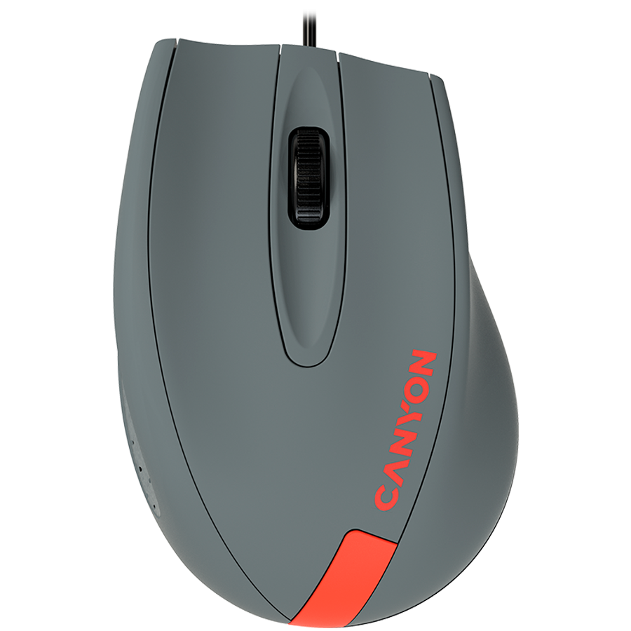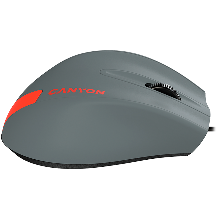 CANYON Wired Optical Mouse with 3 keys, DPI 1000 With 1.5M USB cable,Gray-Red,size 68*110*38mm,weight:0.072kg