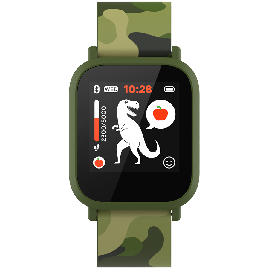 CANYON My Dino KW-33, Teenager smart watch, 1.3 inches IPS full touch screen, green plastic body, IP68 waterproof, BT5.0, multi-sport mode, built-in kids game, compatibility with iOS and android, 155mAh battery, Host: D42x W36x T9.9mm, Strap: 240x22m