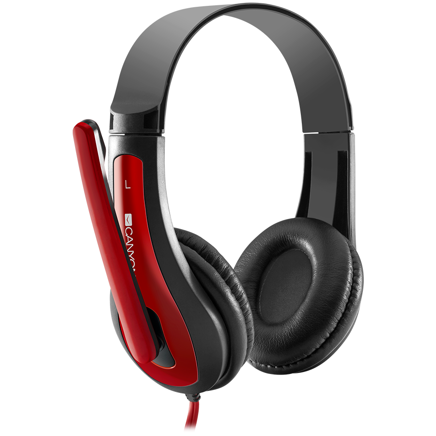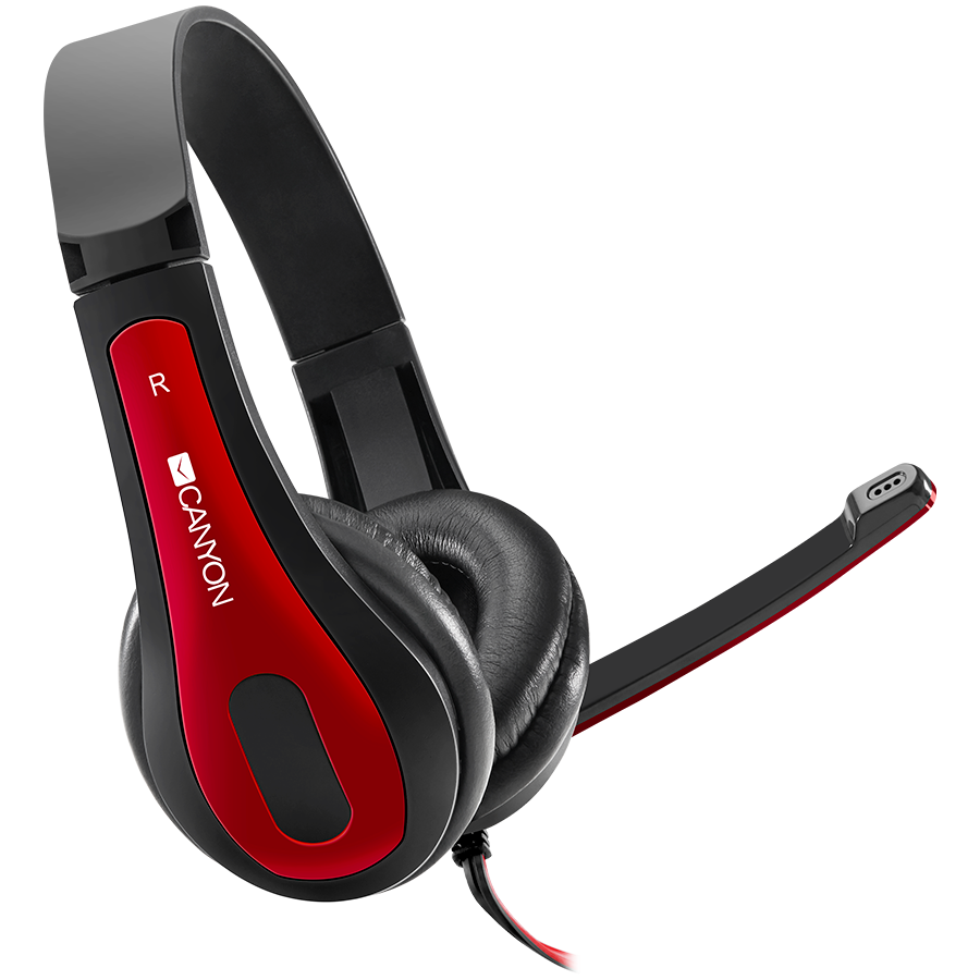 CANYON HSC-1, basic PC headset with microphone, combined 3.5mm plug, leather pads, Flat cable length 2.0m, 160*60*160mm, 0.13kg, Black-red