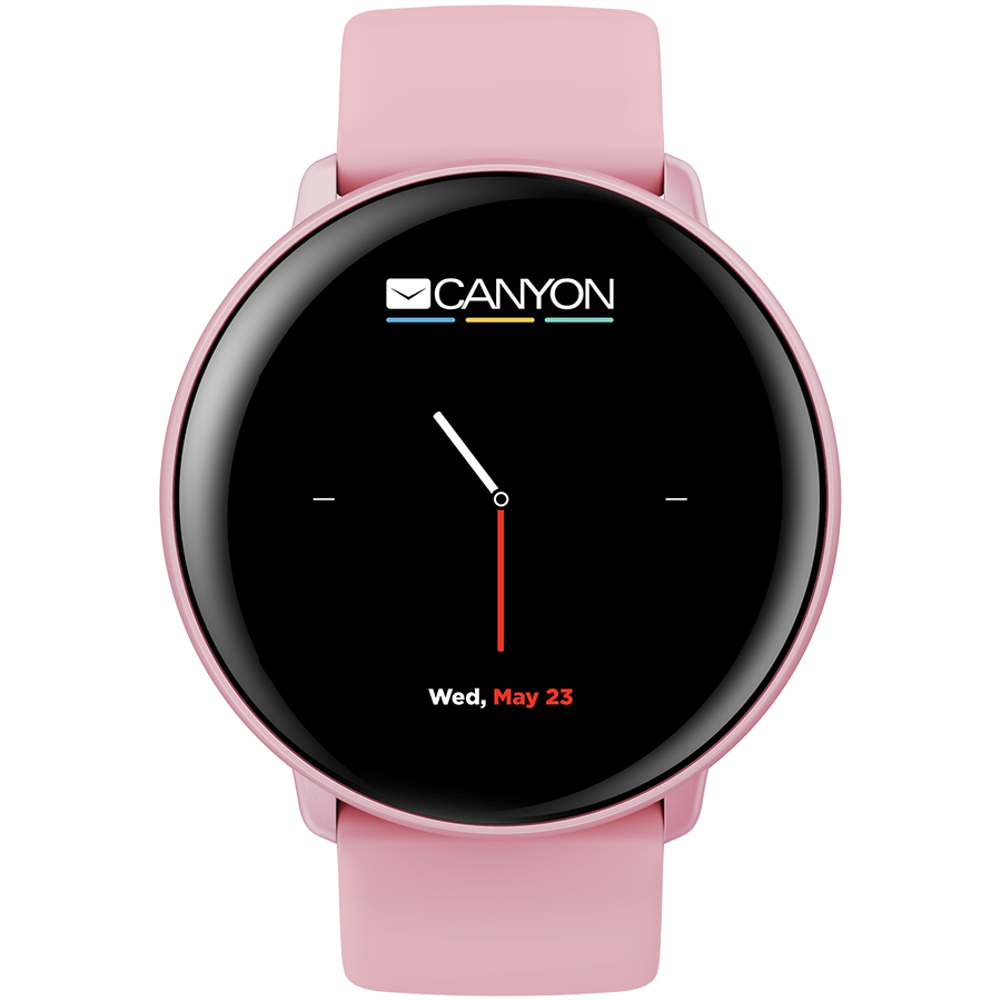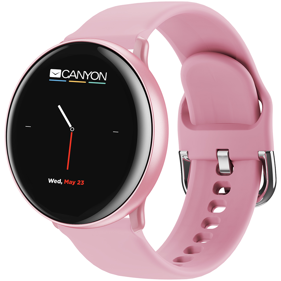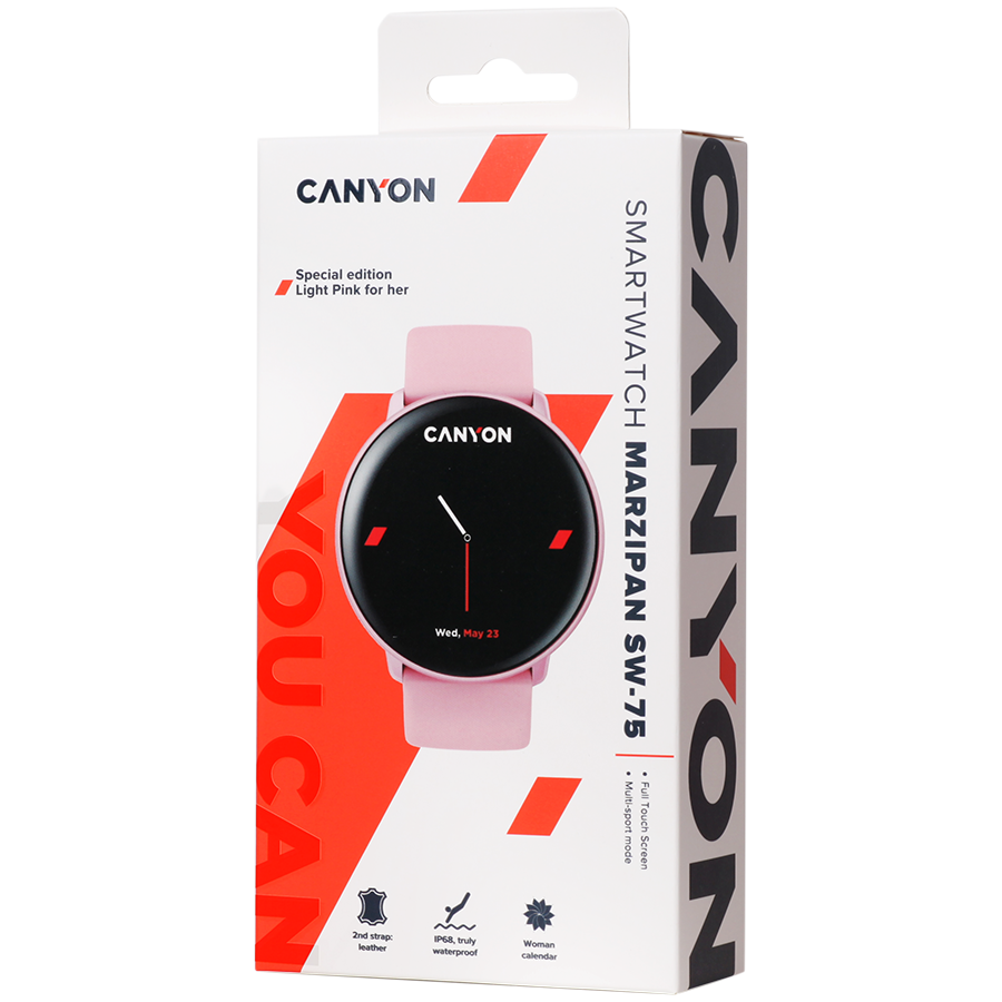 CANYON Marzipan SW-75 Smart watch, 1.22inches IPS full touch screen, aluminium+plastic body,IP68 waterproof, multi-sport mode with swimming mode, compatibility with iOS and android,Pink with extra pink leather belt, Host: 41.5x11.6mm, Strap: 240x20mm