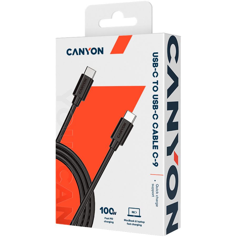 CANYON C-9, 100W, 20V/ 5A, typeC to Type C, 1.2M with Emark, Power wire :20AWG*4C,Signal wires :28AWG*4C,OD4.3mm +/- 0.2mm, PVC ,black