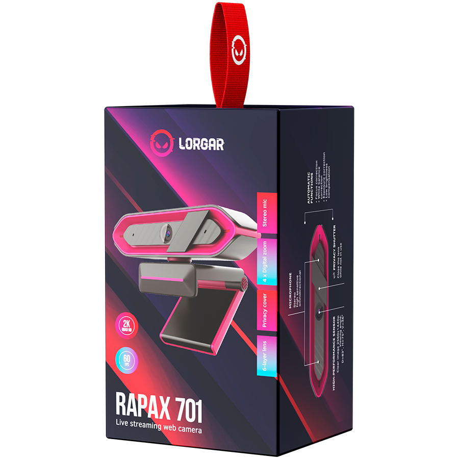LORGAR Rapax 701, Streaming Camera,2K 1080P/60fps, 1/3'',4Mega CMOS Image Sensor, Auto Focus, Built-in high sensivity low noise cancelling Microphone,Pink coating color, USB 2.0 Type C , L=2000mm, size: 105x46.8x62.5mm, Weight: 108g