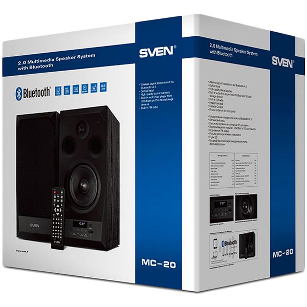 Speakers SVEN MC-20, black (90W, FM, USB/microSD, Display, RC, Bluetooth, Optical), SV-014438