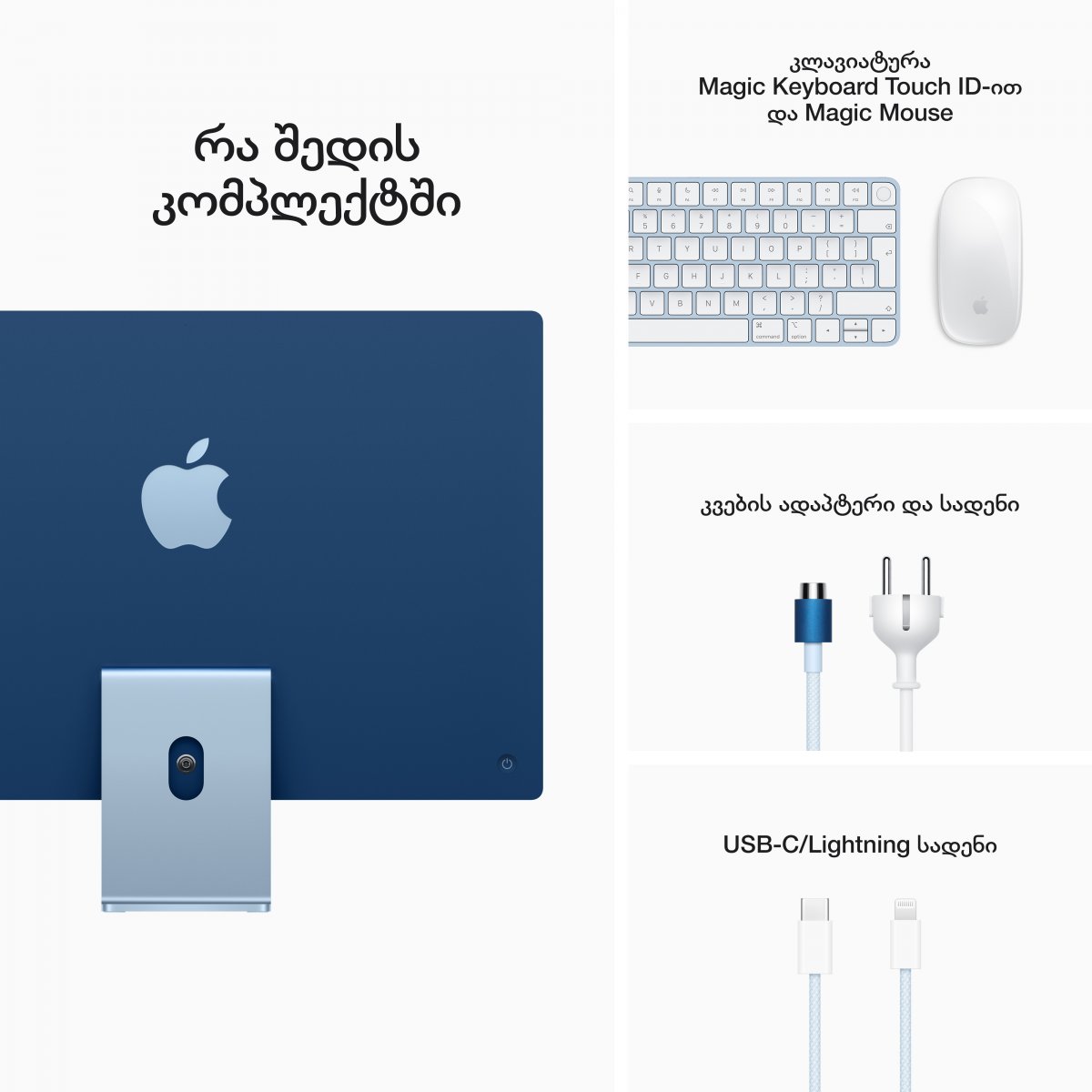 APPLE IMAC 24'' BLU/8C CPU/8C GPU/8GB/256GB, MAGIC MOUSE 2-INT, KEYBOARD W/ TOUCH ID-INT