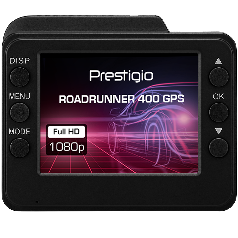 Car Video Recorder PRESTIGIO RoadRunner 400GPS (FHD 1920x1080@30fps, 2.0 inch screen, MSC8328P, 2 MP CMOS GC2023 image sensor, 3 MP camera, 140° Viewing Angle, Mini USB, capacitor, GPS, Automatic Night Mode, Motion Detection, G-sensor, Cyclic Recordi