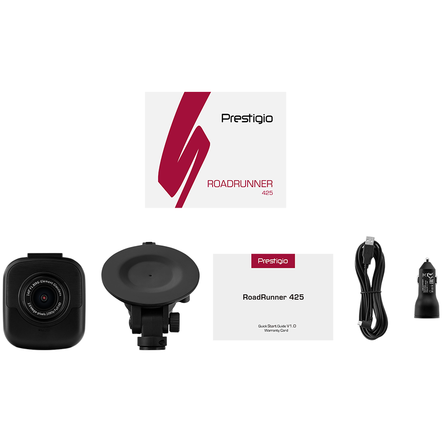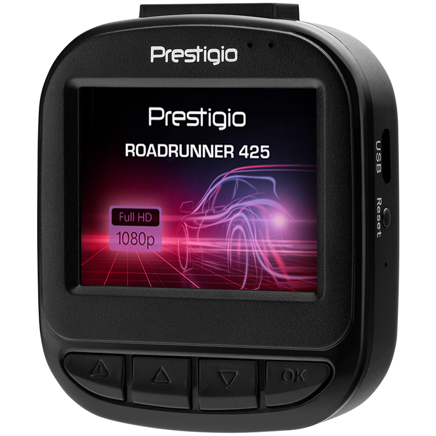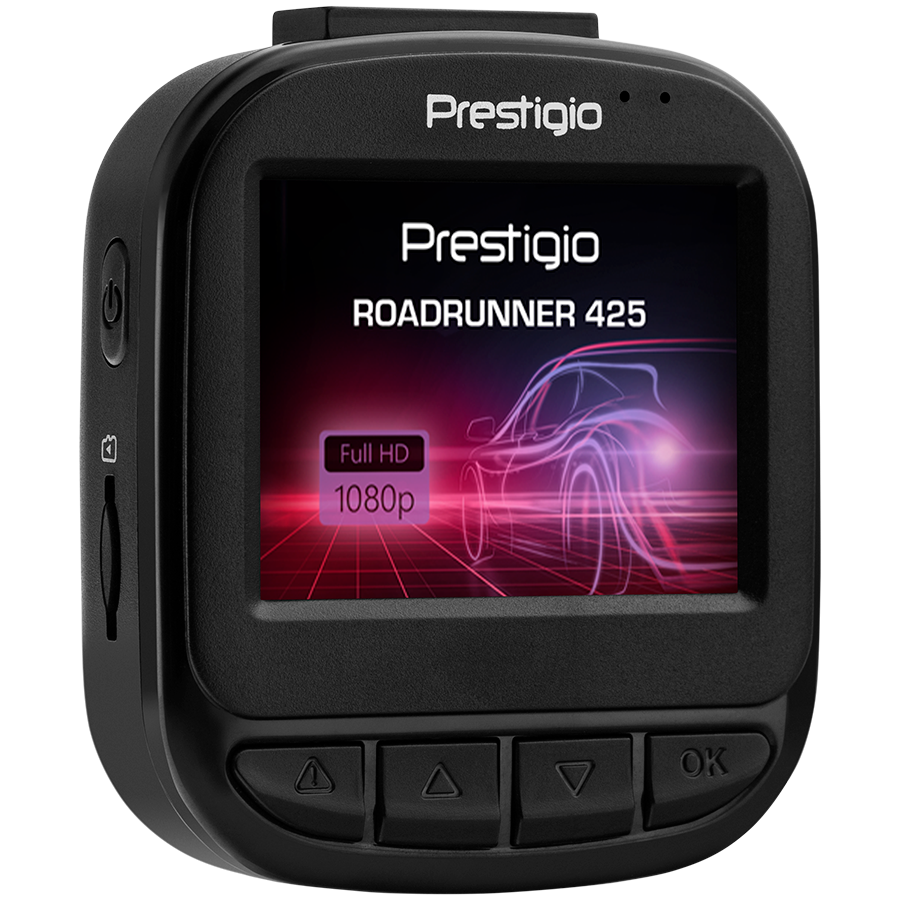 Prestigio RoadRunner 425, 2.0'' LCD (960x240) display, FHD 1920x1080@30fps, HD 1280x720@30fps, GP5168, 2.0 MP CMOS GC2023 image sensor, 2 MP camera, 140° Viewing Angle, 340 mAh, OVP, NTC, Motion Detection, G-sensor, Cyclic Recording, color/