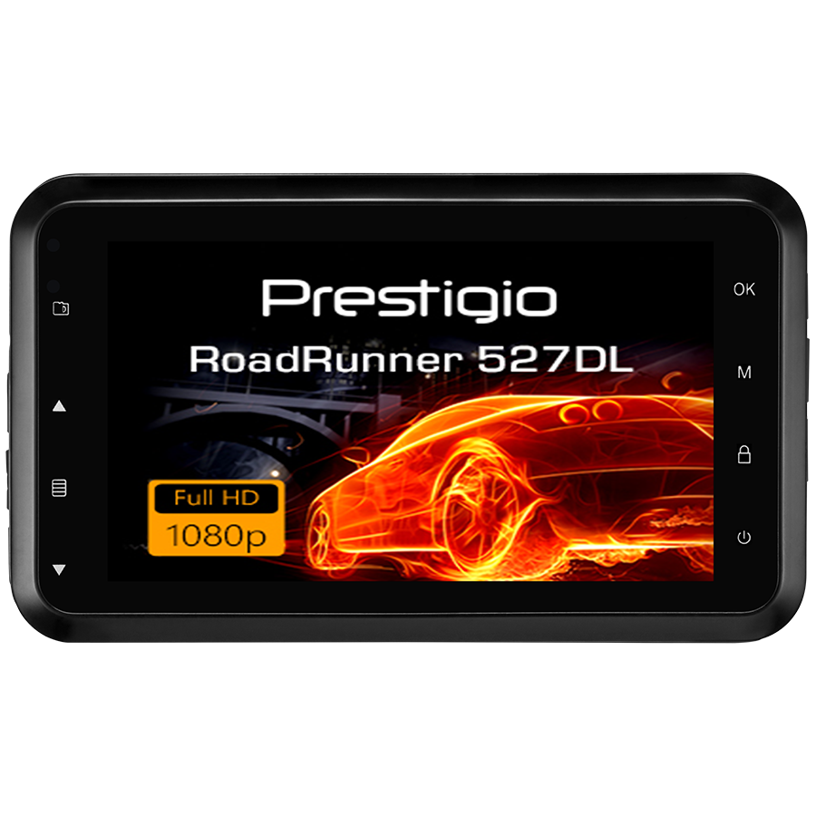 Car Video Recorder PRESTIGIO RoadRunner 527DL (Dual Camera: front - FHD 1920x1080@30fps, HD 1280x720@30fps, rear - VGA 640х480@30fps, 3.0 inch screen, NTK966580, 2 MP CMOS GC2023 image sensor, 12 MP camera, 140° Viewing Angle, Mini USB, 180 mAh, Auto