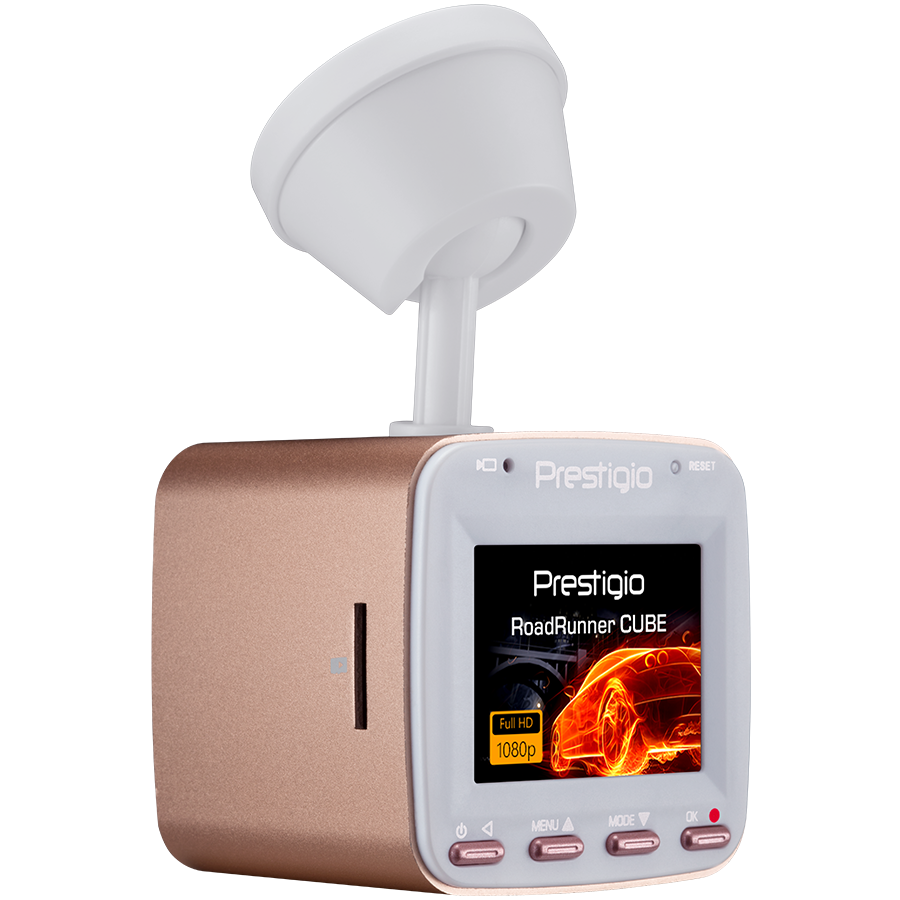 Car Video Recorder PRESTIGIO RoadRunner CUBE (FHD 1920x1080@30fps, 1.5 inch screen, 2 MP CMOS SONY IMX323 image sensor, 2 MP camera, 140° Viewing Angle, Micro USB, 150 mAh, WiFi, Motion Detection, G-sensor, Cyclic Recording, rose gold/white, Metal+Pl