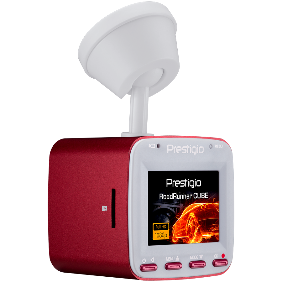 Car Video Recorder PRESTIGIO RoadRunner CUBE (FHD 1920x1080@30fps, 1.5 inch screen, 2 MP CMOS SONY IMX323 image sensor, 2 MP camera, 140° Viewing Angle, Micro USB, 150 mAh, WiFi, Motion Detection, G-sensor, Cyclic Recording, red/white, Metal+Plastic)