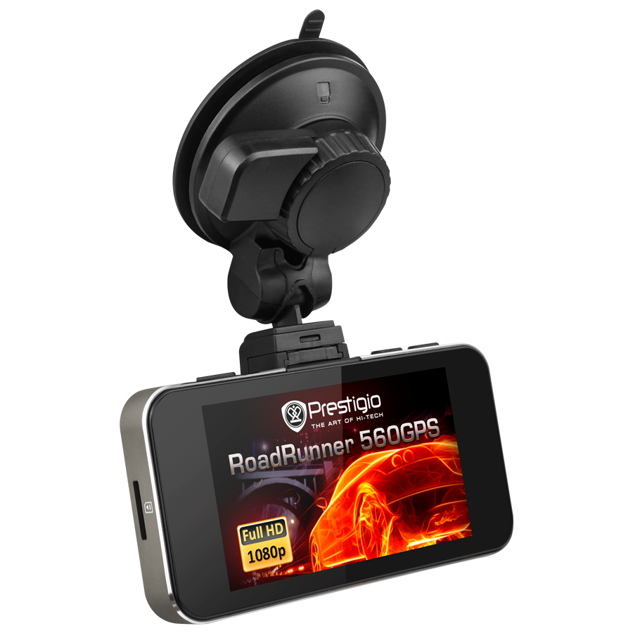 Car Video Recorder PRESTIGIO RoadRunner 560GPS (FHD 1920x1080@30 fps, 3.0 inch screen, Ambarella A7, 4 MP, 170˚ viewing angle, HDMI, mini USB, 10x zoom, 130 mAh, GPS, Motion detection, Night Vision, EIS, G-sensor, IR, WDR, Gun Metal colour)