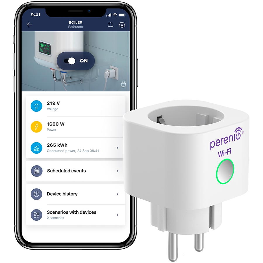 Smart Power Plug is a device to control remotely via Wi-Fi connected through it load, measure its power and monitor electrical energy consumption. White color, multi language version.