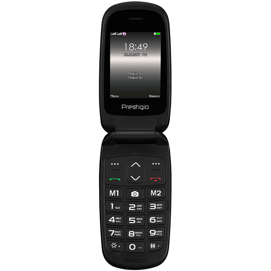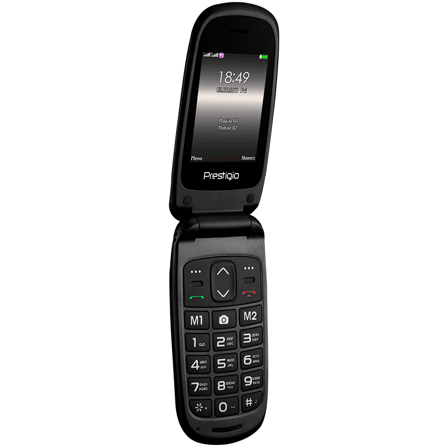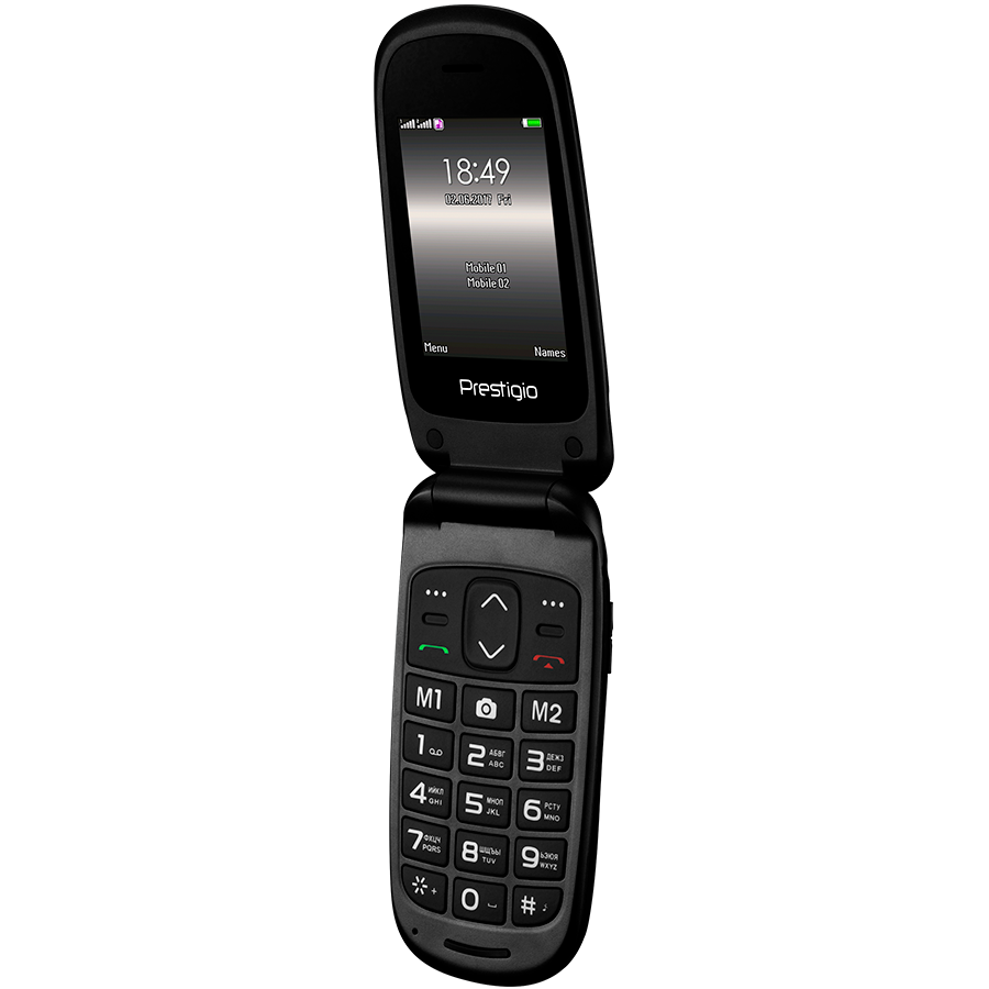 Prestigio Grace B1, 2.4''(240*320) 2.5D display, Dual SIM, 32MB DDR, 32MB Flash, 0.3MP rear cammera, 750mAh battery, EN keyboard, color/Black