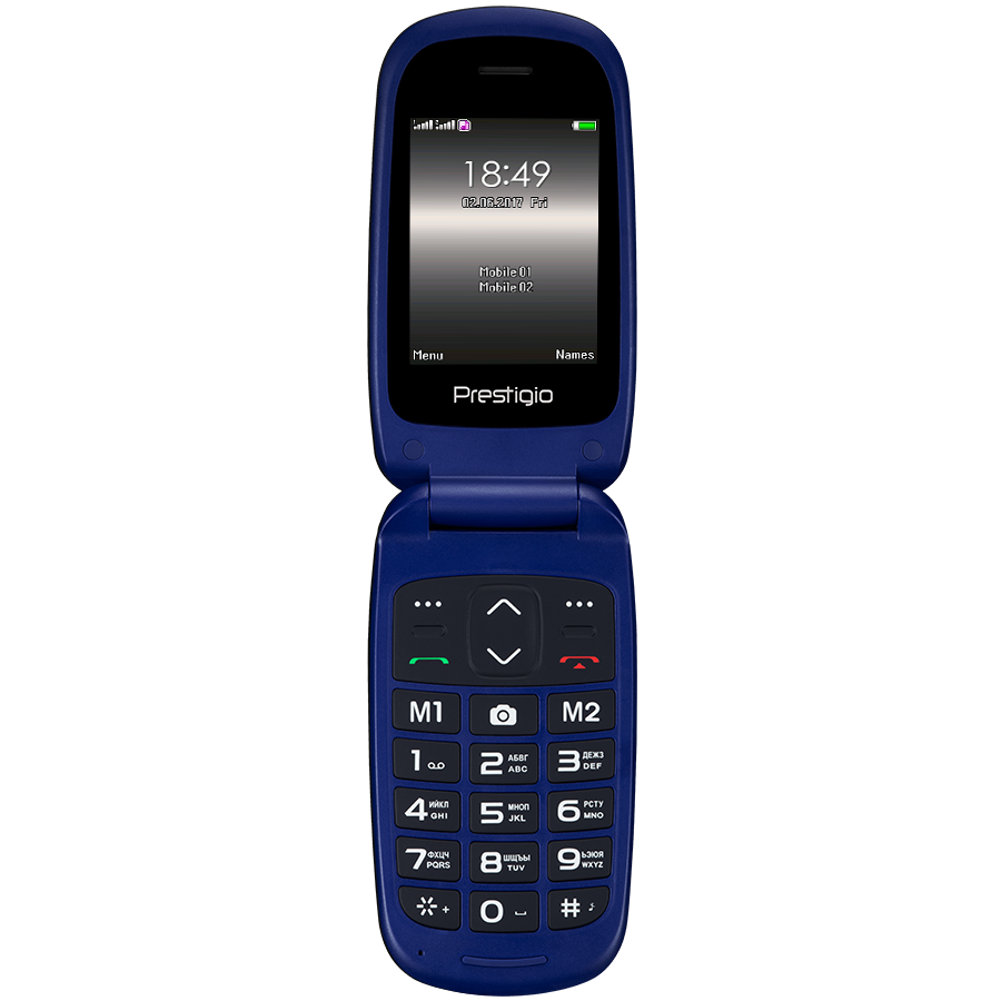 Prestigio Grace B1, 2.4''(240*320) 2.5D display, Dual SIM, 32MB DDR, 32MB Flash, 0.3MP rear cammera, 750mAh battery, color/Blue