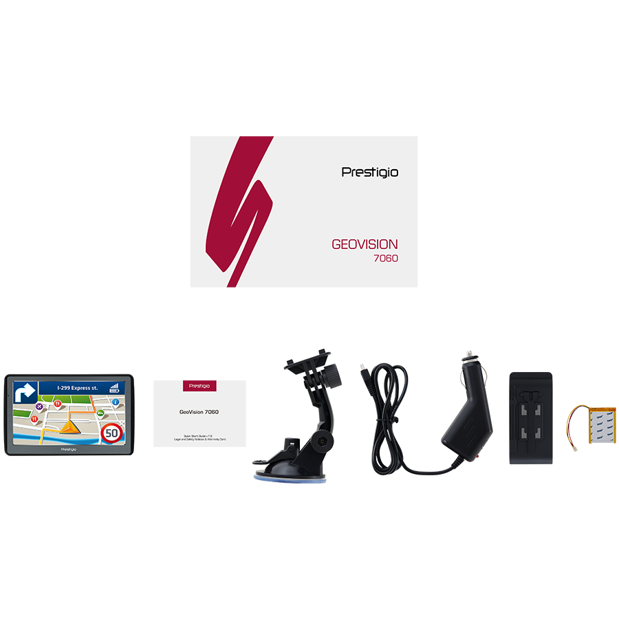 Prestigio GeoVision 7060, 7" (800*480) TN display, WinCE 6.0, 800MHz Mstar MSB2531 Cortex A7, 128MB DDR, 8GB Flash, 1500mAh battery, color/black, No maps inside