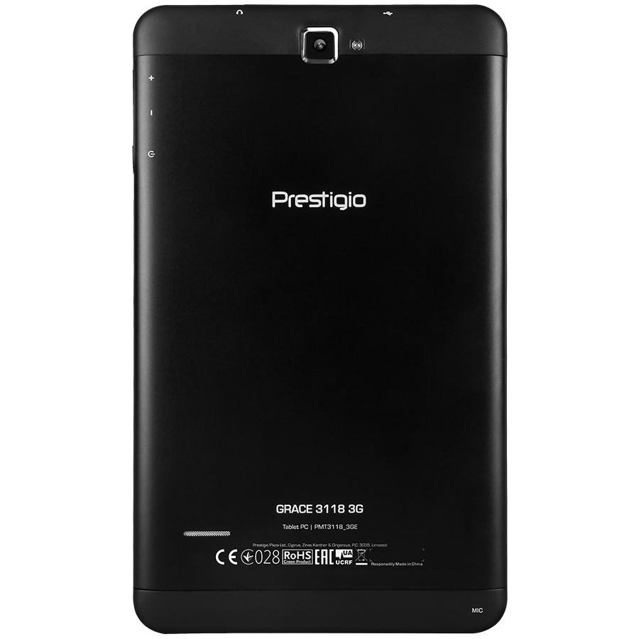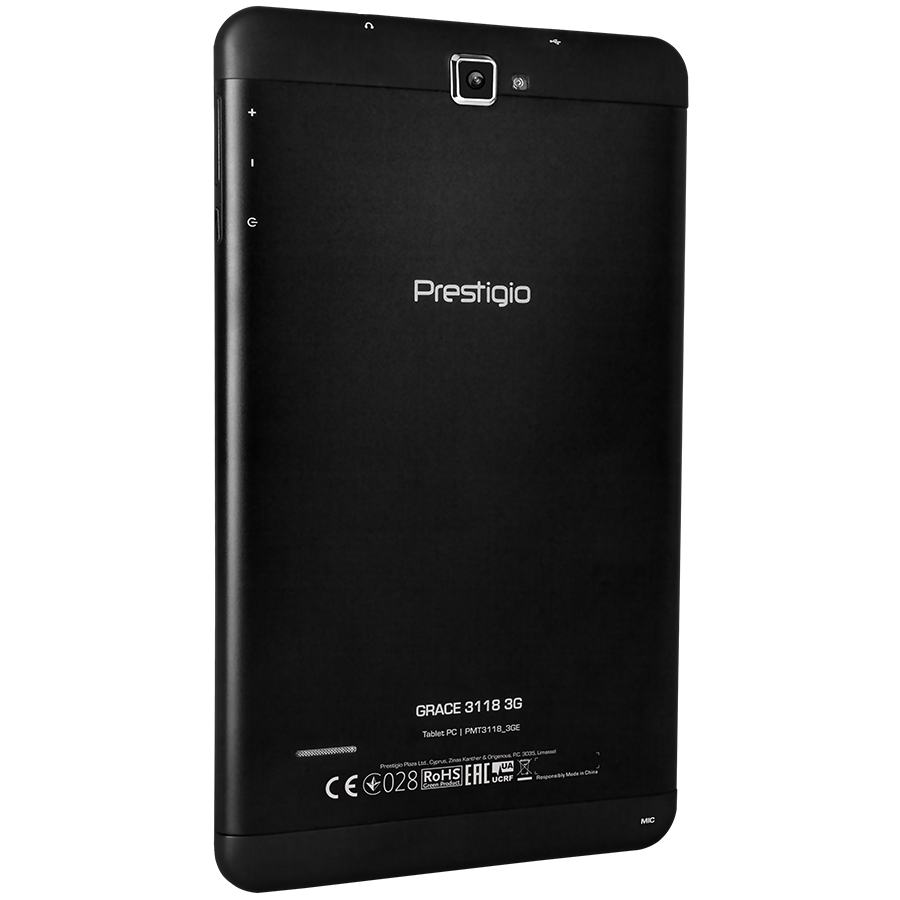 Prestigio Grace 3118 3G, 8'' WXGA(800x1280) IPS display, Dual SIM, Android 6.0, 1.3GHz Quad Core, 1GB DDR, 16GB Flash, 0.3MP Front + 2.0MP rear camera, 4000mAh battery, color/Black