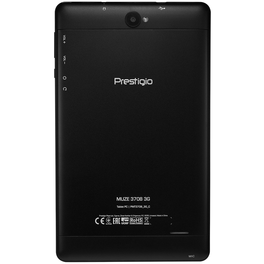 Prestigio Muze 3708 3G,PMT3708_3G_C, Dual SIM, 3G, 8.0'' (800x1280) IPS display, Android 7.0, quad core processore, 1GB DDR, 8GB Flash, 0.3MP front + 2.0MP rear camera, 4000mAh battery, color/ Black