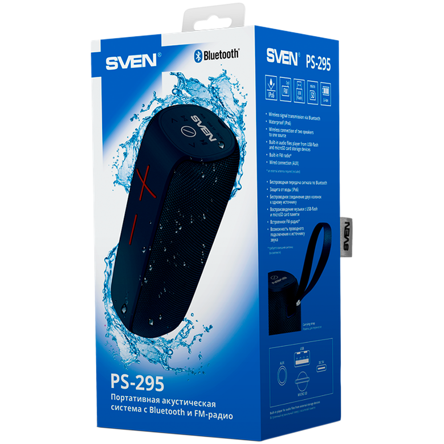 Speaker SVEN PS-295, blue (20W, Waterproof (IPx6), TWS, Bluetooth, FM, USB, microSD, 3000mA*h); SV-020200