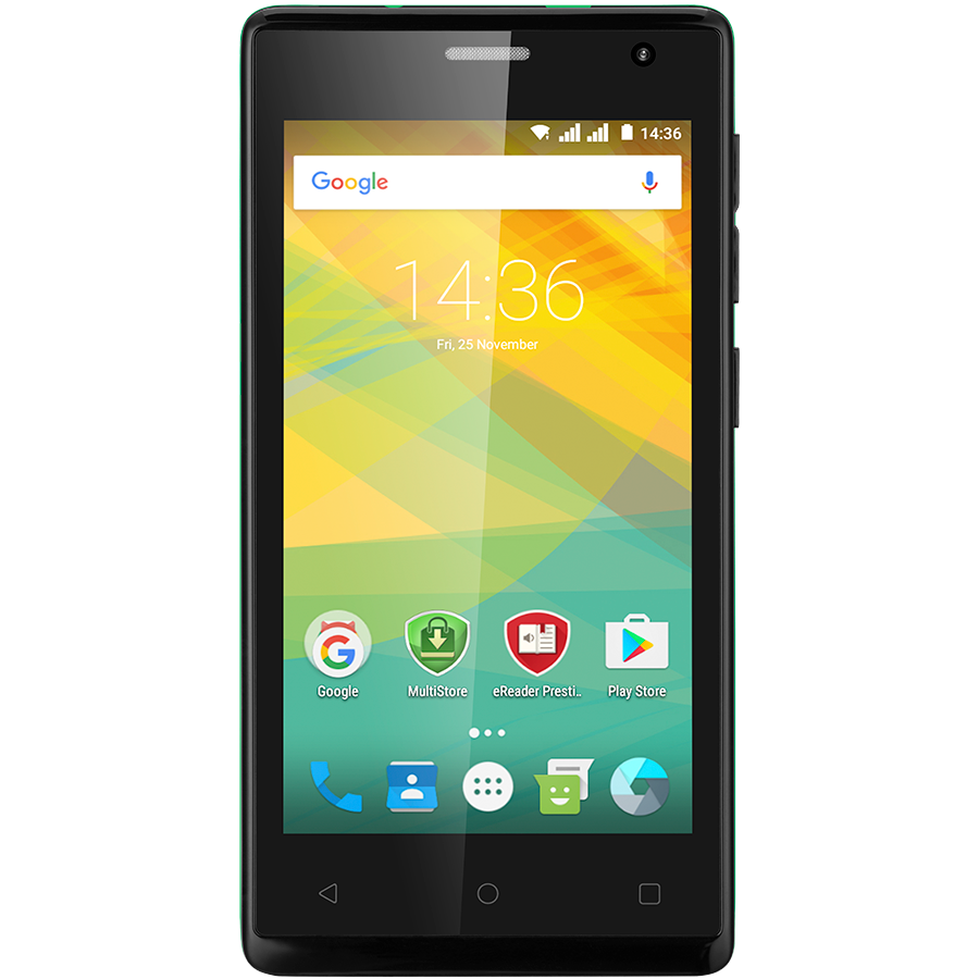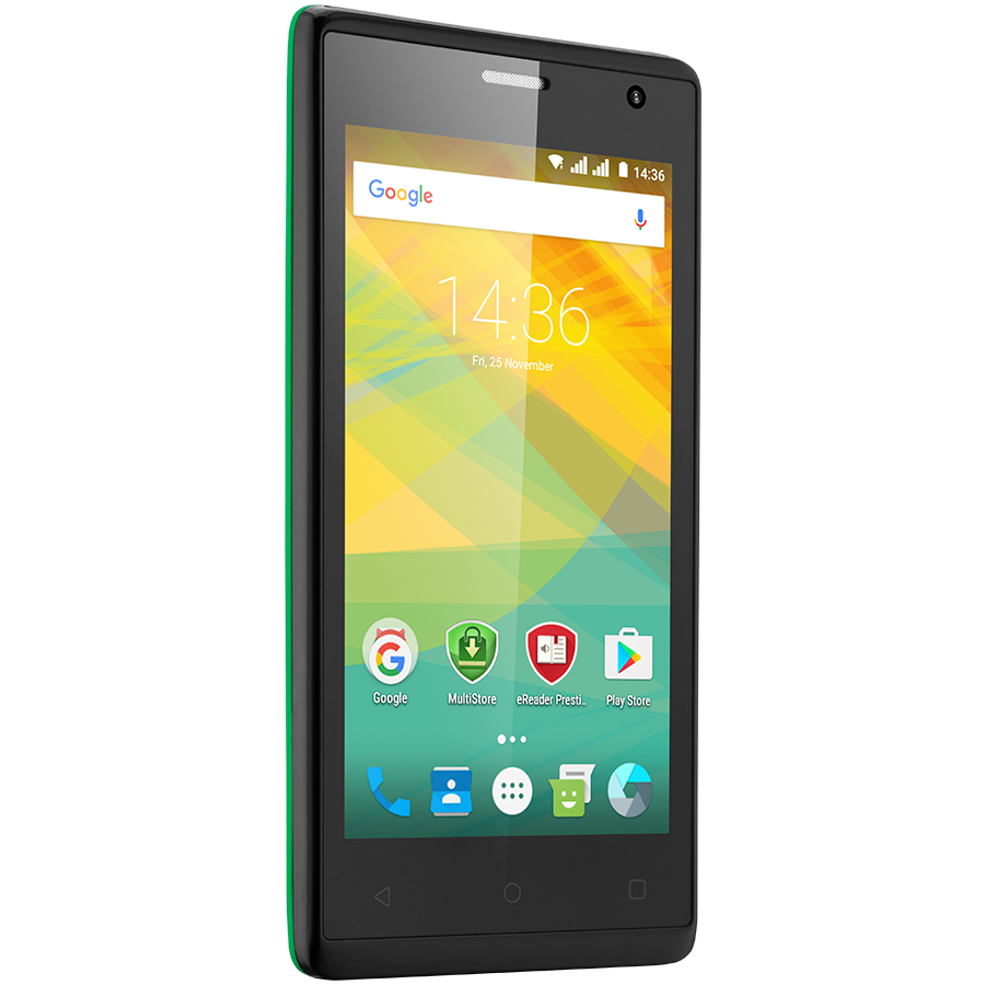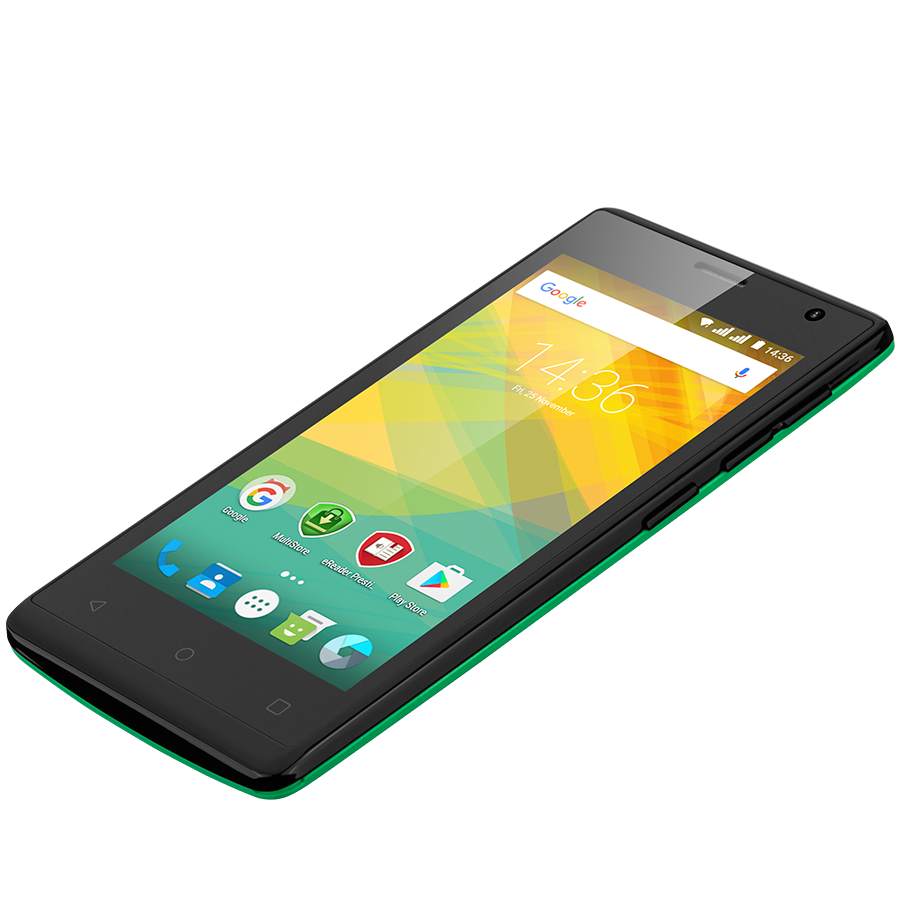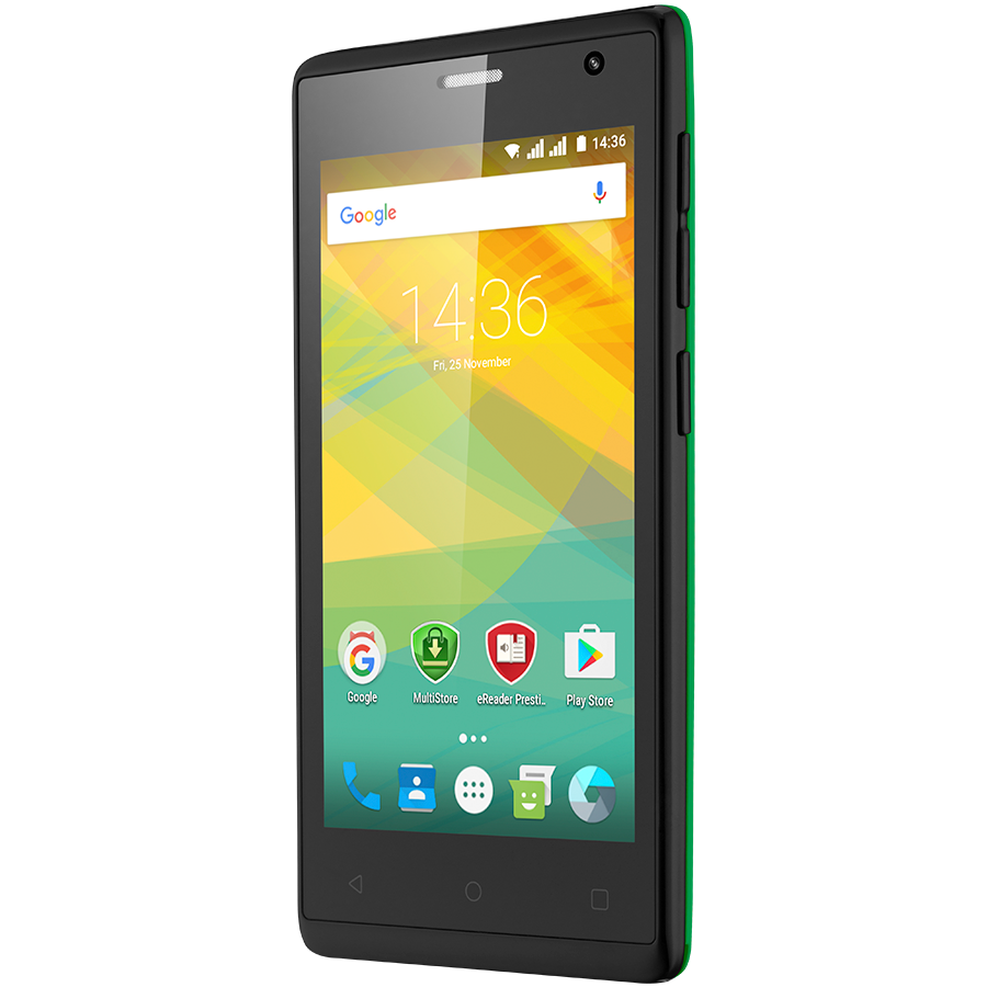 Prestigo WIZE OK3, PSP3468DUO, dual SIM, 3G, 4.5" (480*854) TN display, Android 6.0 Marshmallow, quad core 1.2GHz, 512MB RAM + 4GB eMMC, 0.3MP front + 5.0MP rear camera with LED-flash, 1550mAh battery, green
