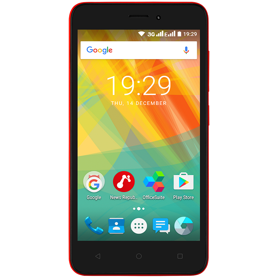 Prestigio Wize G3, PSP3510DUO, dual SIM, 3G, 5.0" (480*854) TN display, Android 6.0 Marshmallow, quad core 1.2GHz, 1GB RAM + 8GB eMMC, 0.3MP front + 5.0MP rear camera with LED-flash, 2000mAh battery, red