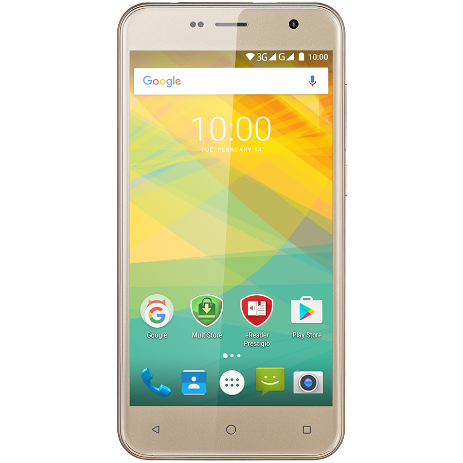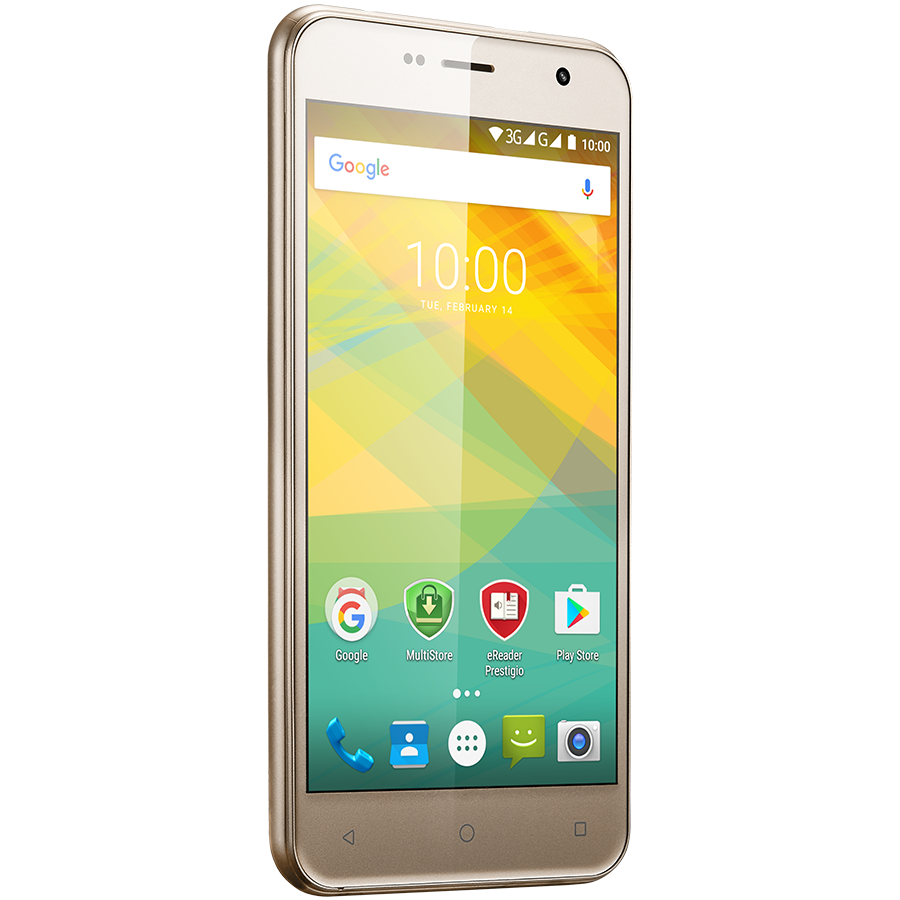Prestigio Muze B3, PSP3512DUO, dual SIM, 3G, 5.0" (720*1280) IPS display, Android 6.0 Marshmallow, quad core 1.3GHz, 1GB RAM + 8GB eMMC, 2.0MP front + 8.0MP rear camera with LED-flash, 2000mAh battery, golden