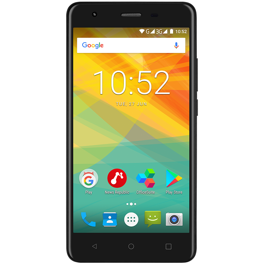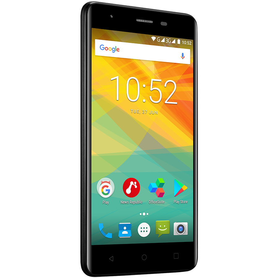 Prestigio Muze H3, PSP3552DUO, dual SIM, 3G, 5.5" (720*1280) IPS display, Android 7.0 Nougat, quad core 1.3GHz, 1GB RAM + 8GB eMMC, 2.0MP front + 8.0MP AF rear camera with LED-flash, 2900mAh battery, black