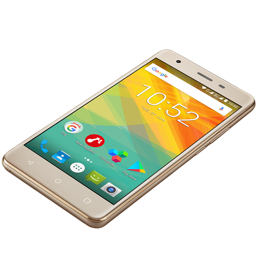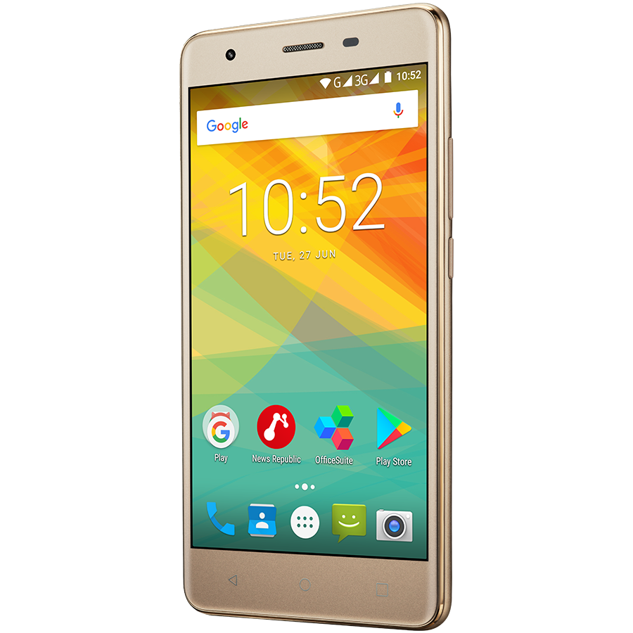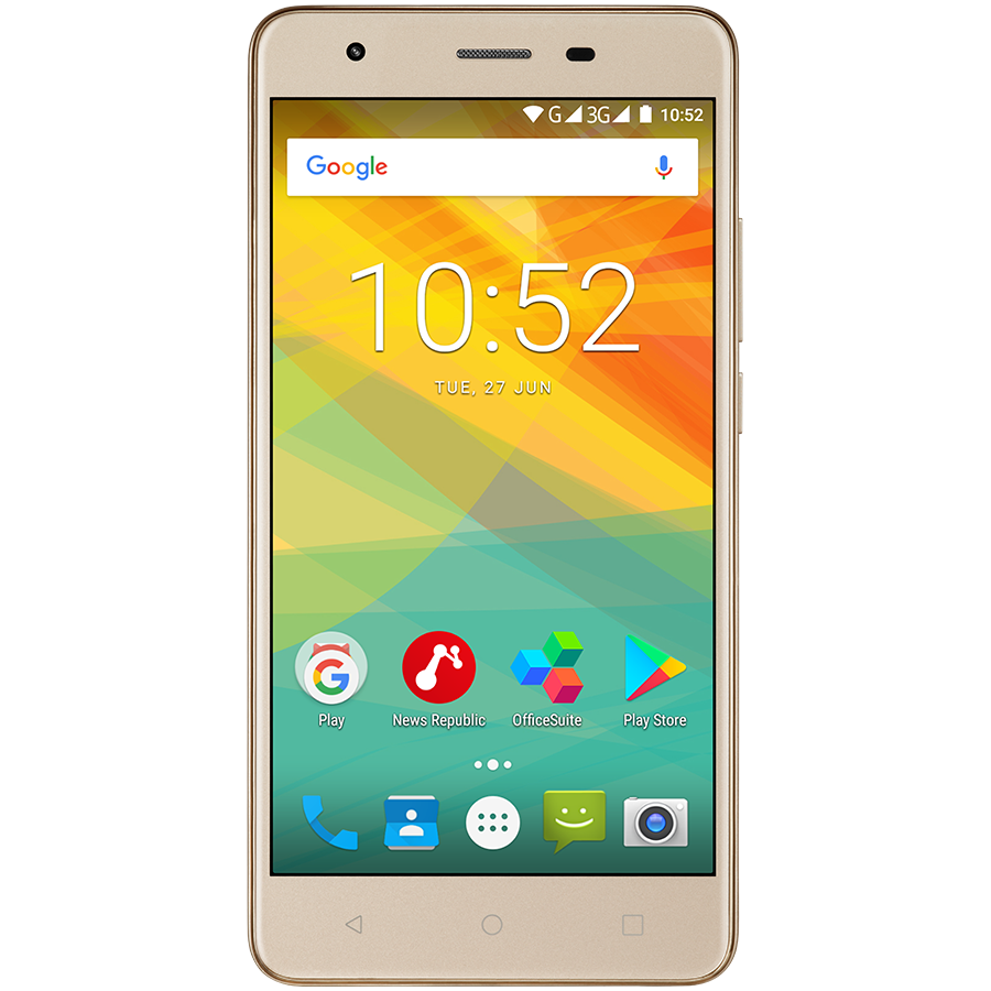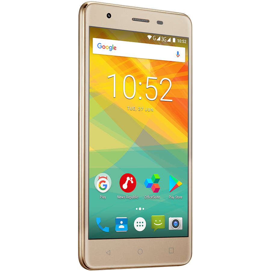 Prestigio Muze H3, PSP3552DUO, dual SIM, 3G, 5.5" (720*1280) IPS display, Android 7.0 Nougat, quad core 1.3GHz, 1GB RAM + 8GB eMMC, 2.0MP front + 8.0MP AF rear camera with LED-flash, 2900mAh battery, golden