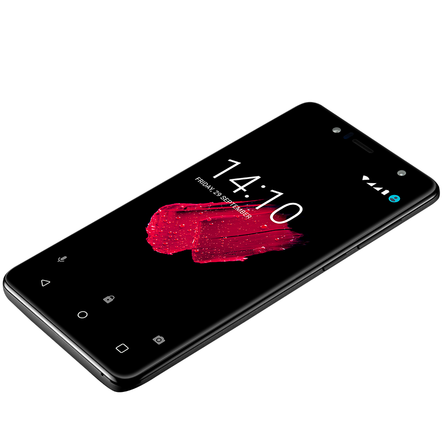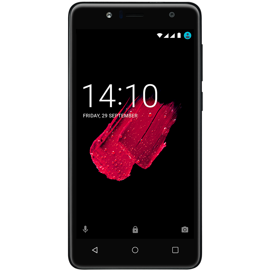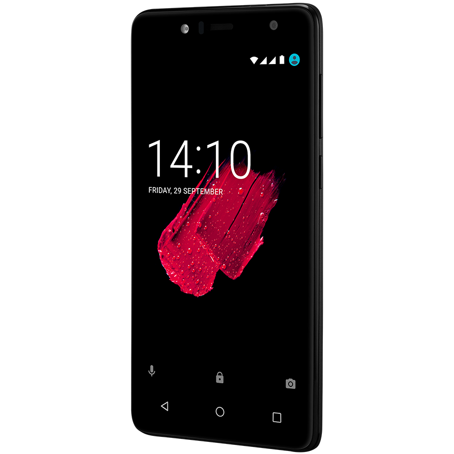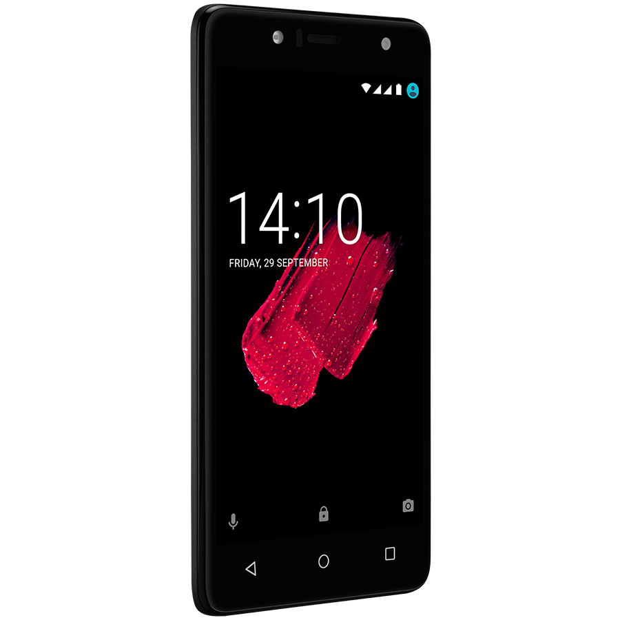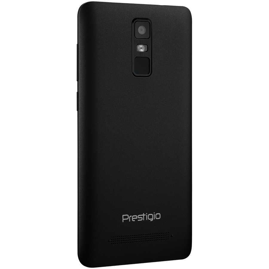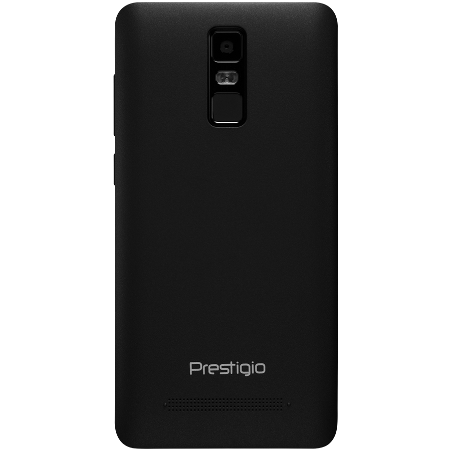 Prestigio Muze B5, PSP5520DUO, fingerprint scanner, dual SIM, 3G, 5.2" (720*1280) IPS 2.5D display, Android 7.0 Nougat, quad core 1.3GHz, 1GB RAM + 16GB eMMC, 5.0MP front + 13.0MP AF rear camera with LED-flash, 2450mAh battery, black