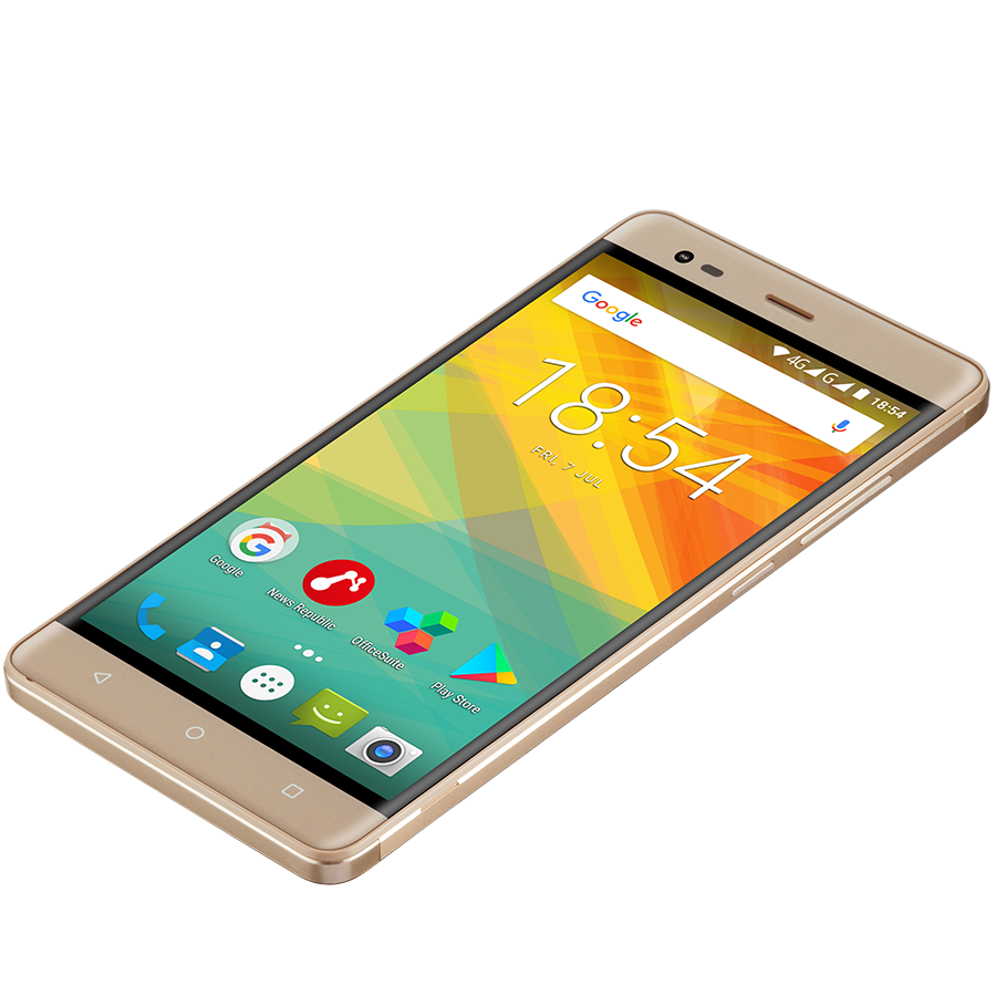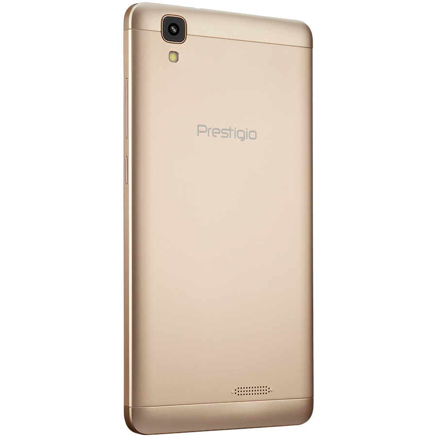 Prestigio Grace R5 LTE, PSP5552DUO, dual SIM, 4G, 5.5" (720*1280) IPS display, Android 7.0 Nougat, quad core 1.25GHz, 1GB RAM + 16GB eMMC, 2.0MP front + 13.0MP rear camera with LED-flash, 3000mAh battery, golden