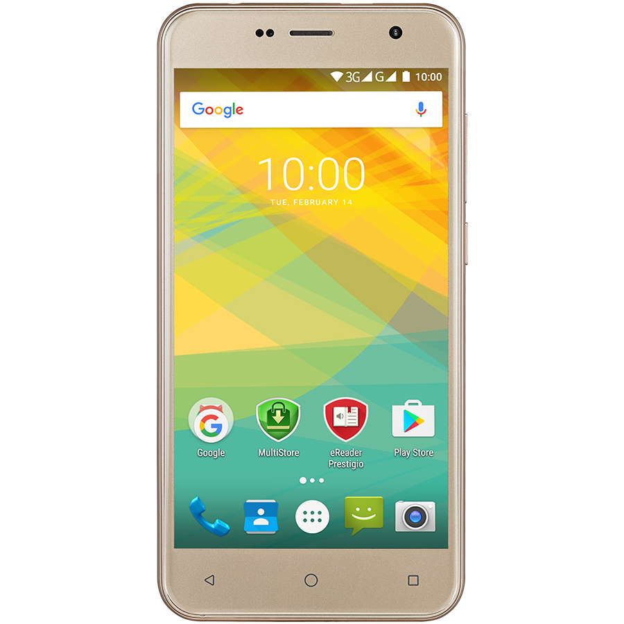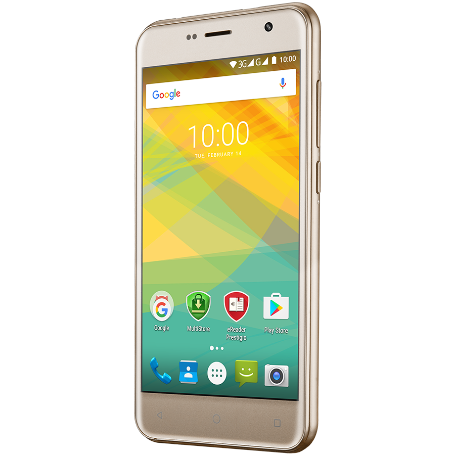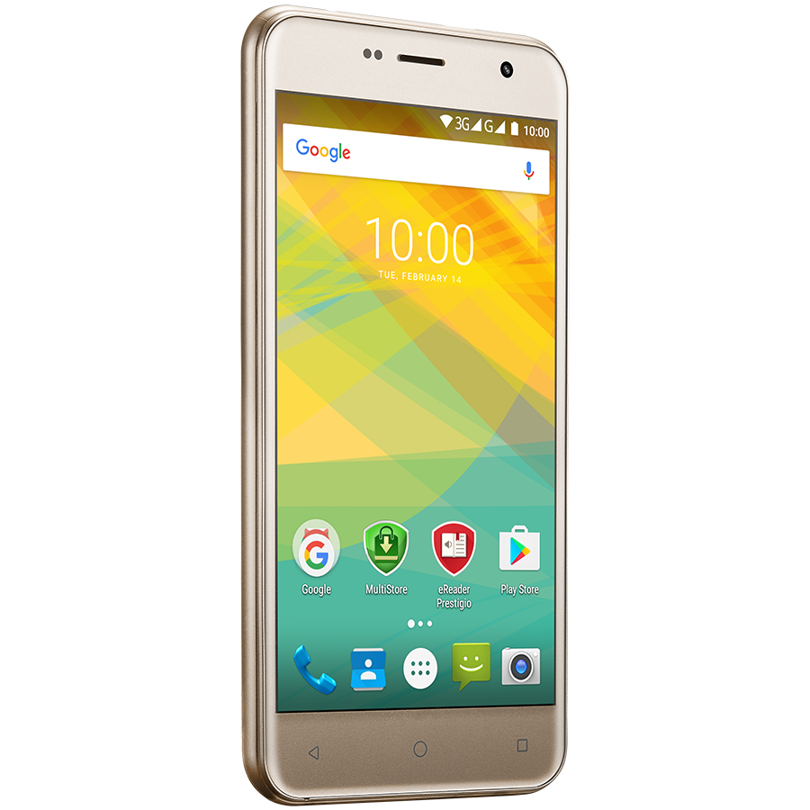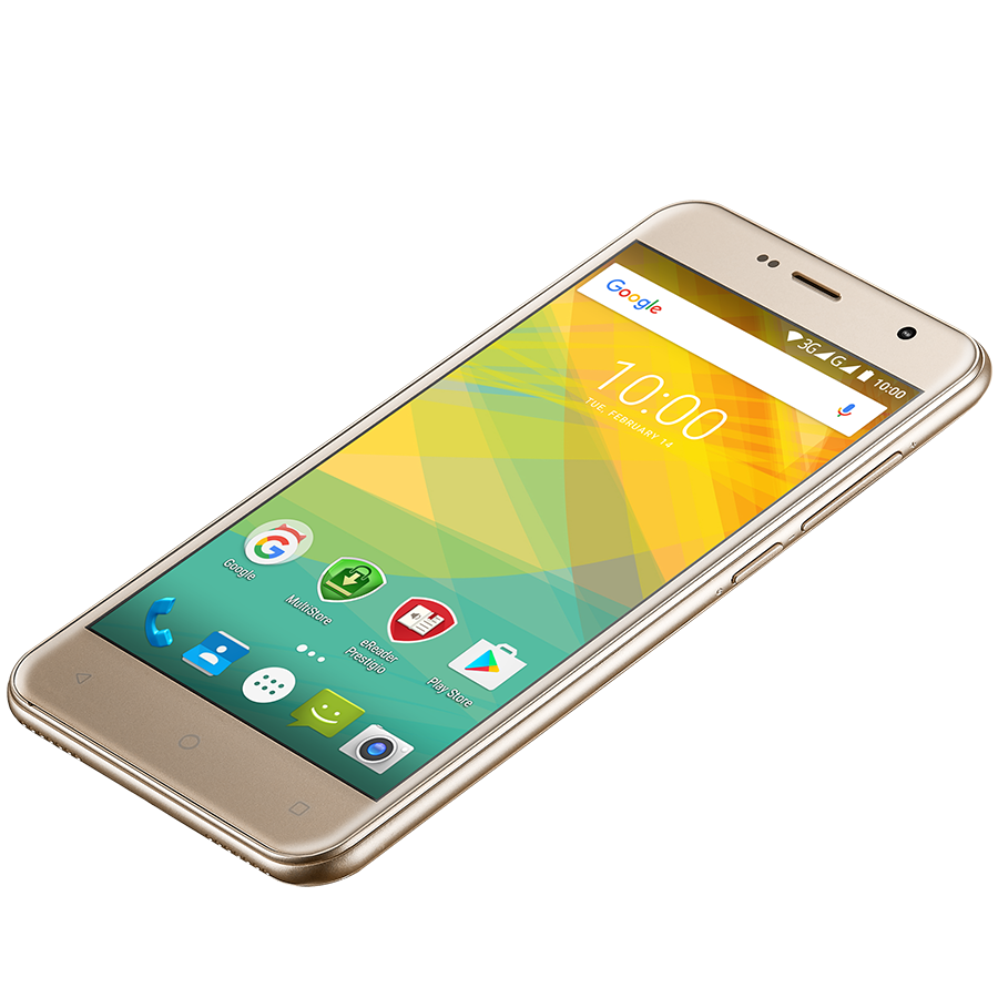 Prestigio Muze B7, PSP7511DUO, dual SIM, 3G, 5.0" (720*1280) IPS display, Android 6.0 Marshmallow, quad core 1.3GHz, 2GB RAM + 16GB eMMC, 2.0MP front + 13.0MP rear camera with LED-flash, 2300mAh battery, golden
