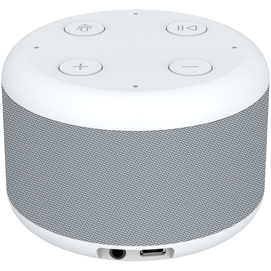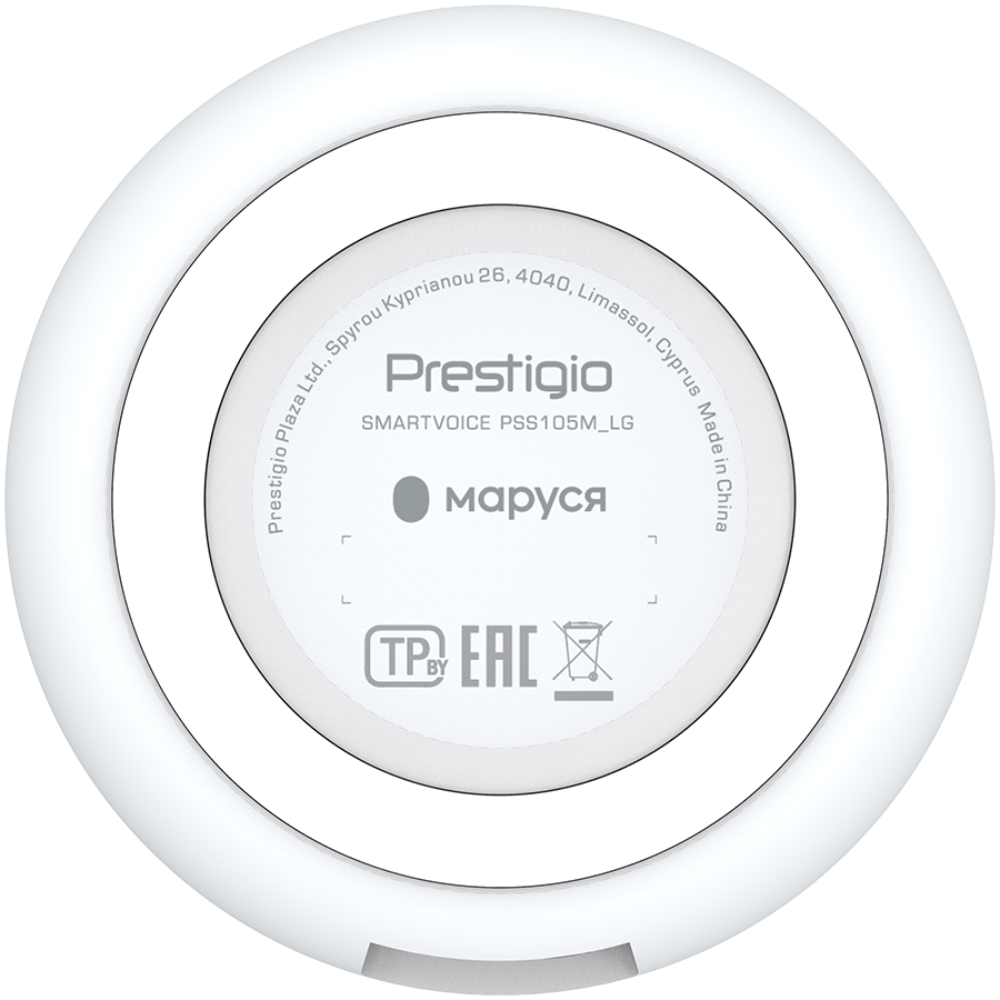 Prestigio Smartvoice, smart speaker with Marusia voice assistant, 1x3W sound power, 4 sensitive microphones, Wi-Fi/Bluetooth modes, AUX port, 3 month of VK Combo included, compact design, light grey color.