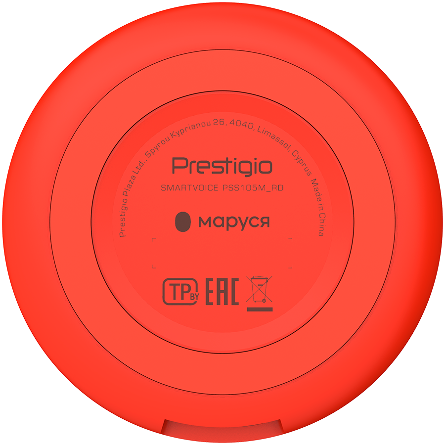 Prestigio Smartvoice, smart speaker with Marusia voice assistant, 1x3W sound power, 4 sensitive microphones, Wi-Fi/Bluetooth modes, AUX port, 3 month of VK Combo included, compact design, red color.