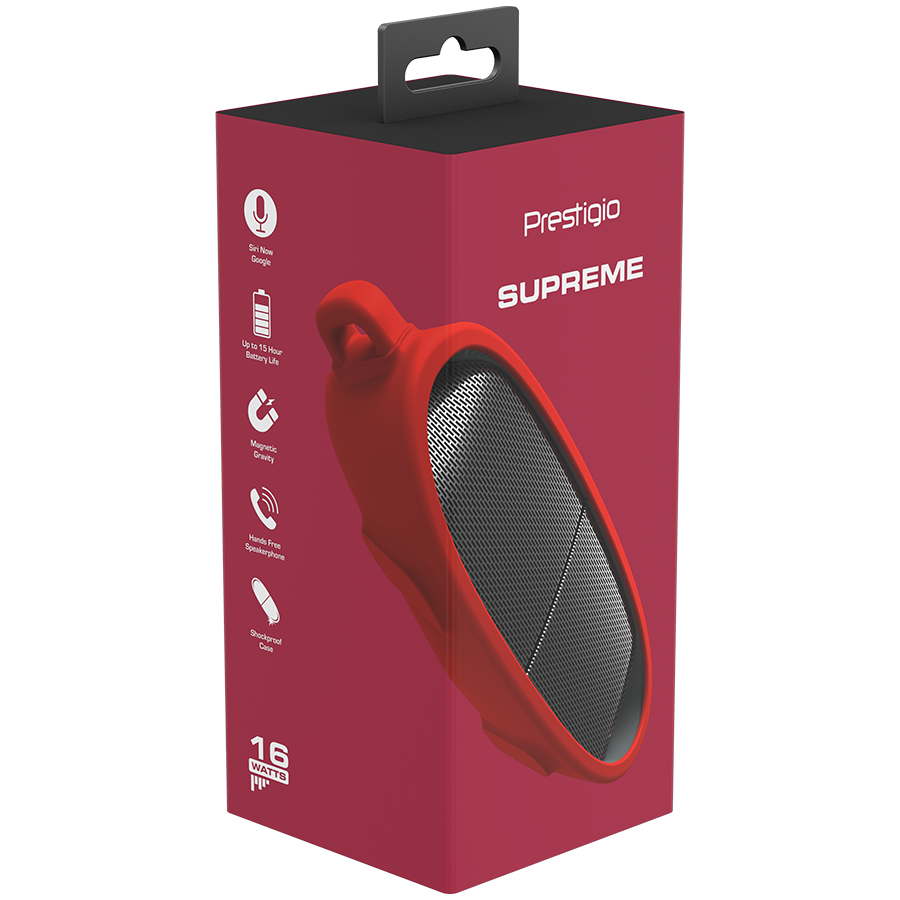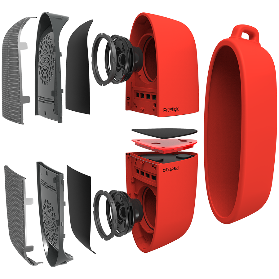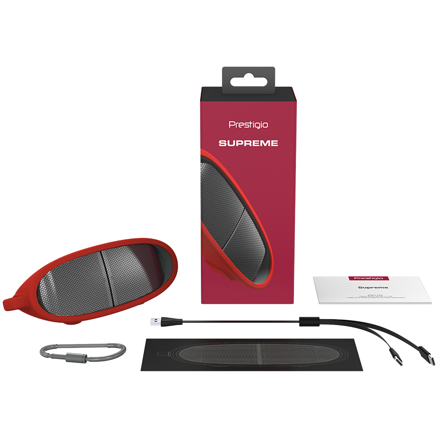 Prestigio Supreme, 2-in-1 bluetooth speakers with magnets, TWS, 1000mAH battery, with Type-C port, Type-C to USB Cable 1.5M, Dimension 69*96*65mm, red color.