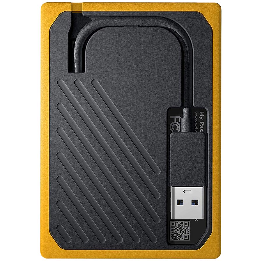 WD 500GB My Passport Go - Portable SSD, up to 400MB/s, 2-meter drop protection - Black w/ Amber trim