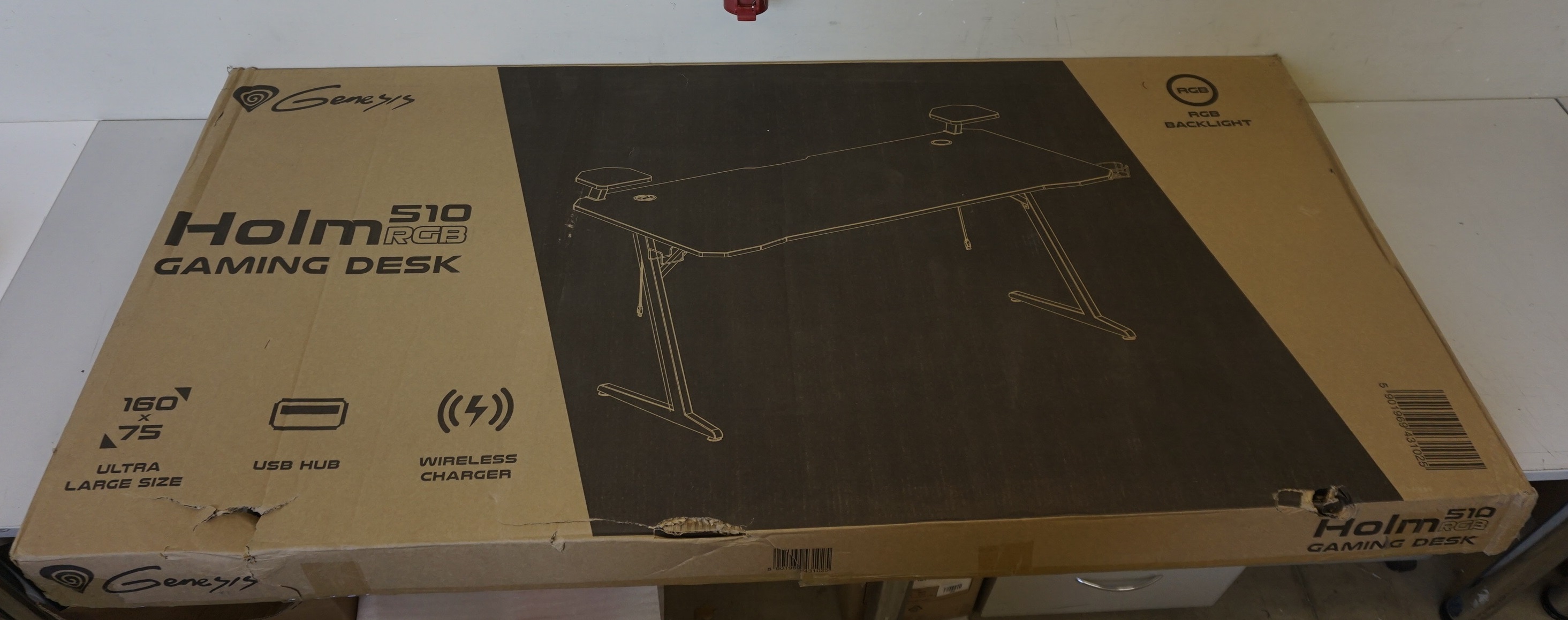 SALE OUT. Genesis Holm 510 RGB Gaming Desk, Black Genesis Gaming Desk Holm 510 RGB Headphone holder, Cup holder, Speaker shelf, Organizer cables, Black, DAMAGED PACKAGING