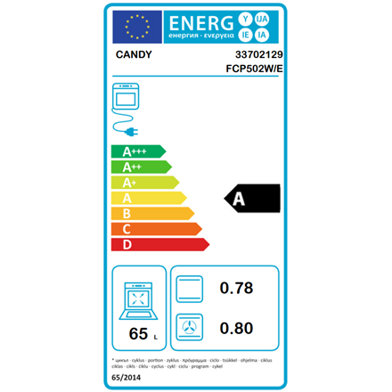 Candy Oven FCP502W/E 65 L, Electric, Manual, Rotary knobs, Height 59.5 cm, Width 59.5 cm, White