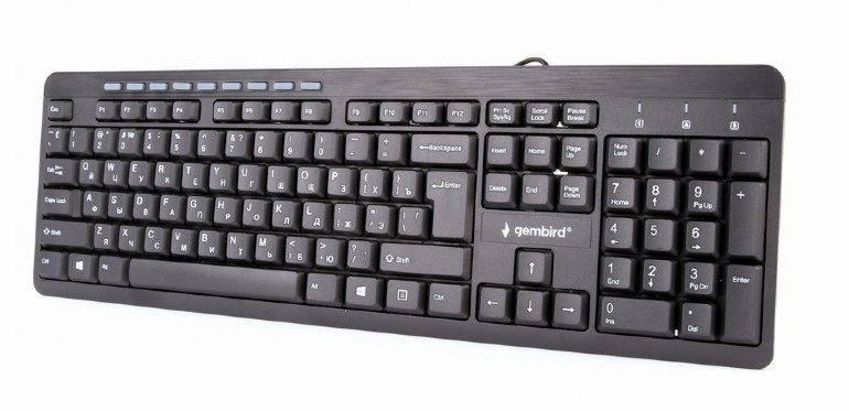 Gembird Standard Size Multimedia Keyboard KB-UM-106-RU Keyboard, 9 practical multimedia hotkeys for internet and music; Silent and comfortable typing, RU, Black, Wired