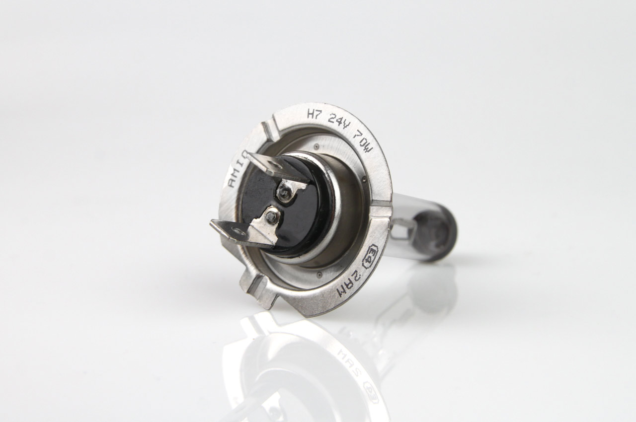 Zastosowanie: światła drogowe światła mijania Rodzaj H7 Napięcie 24V Moc znamionowa 70W Podstawa: PX26d Filtr UV Tak Homologacja E4 Minimalna ilość dla odbiorców hurtowych 10 sztuk lub wielokrotność. Pudełko: 500 szt.