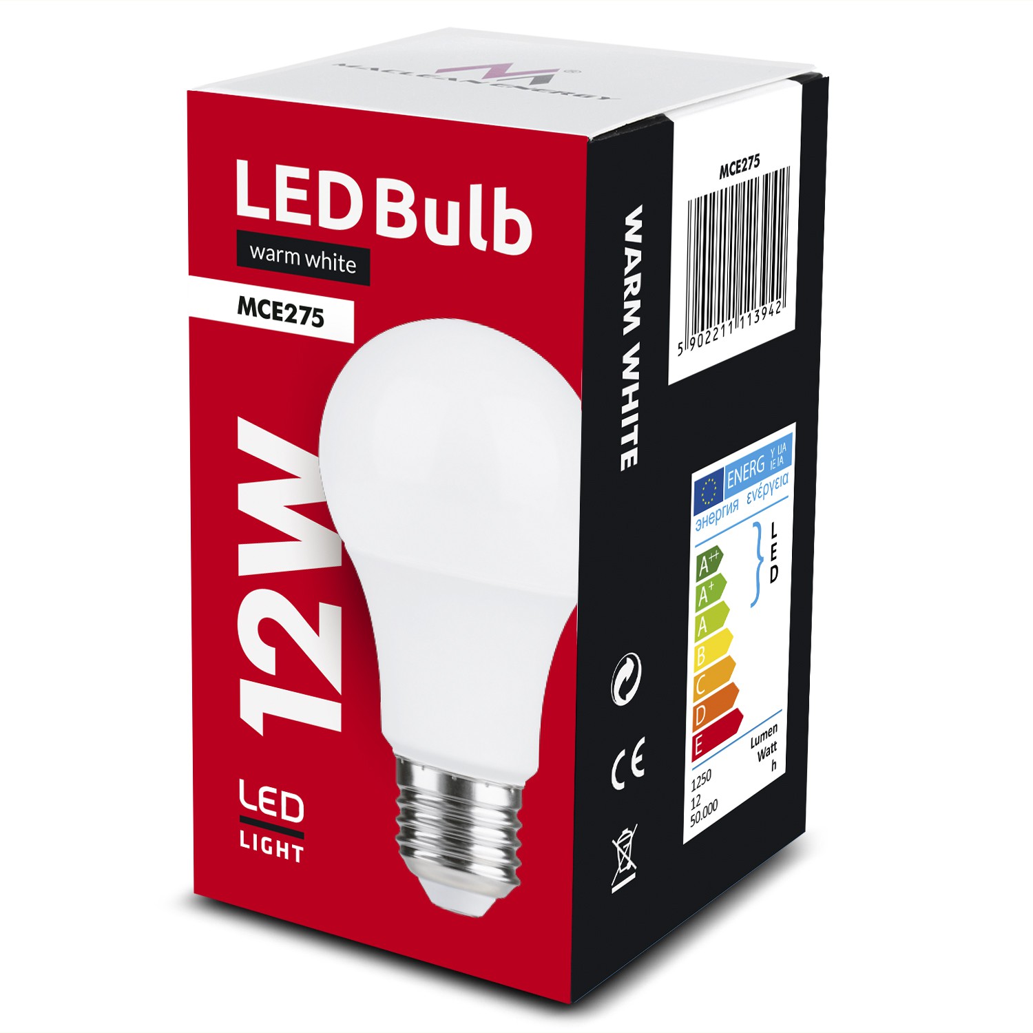 Wysokiej jakości energooszczędna żarówka LED o mocy 12W z mocowaniem opartym na gwincie E27. Jest odpowiednikiem zwykłej żarówki o mocy 85W.Długa żywotność dochodząca do 50000 godzin kilkakrotnie przewyższa żywotność standardowej żarówki wolframowej