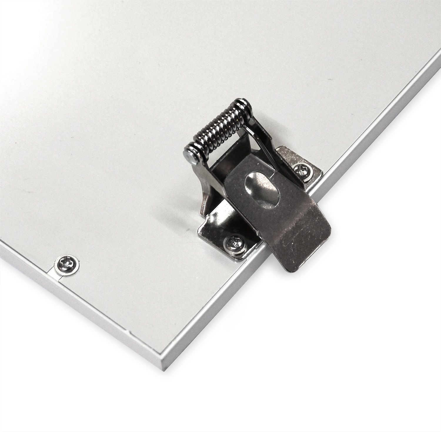 klipsy montażowe wykonane ze stali niezastąpione w montażu paneli LED w podwieszanych sufitach typu karton-gips i z zabudowy kasetonowejprzeznaczone do montażu paneli LED o wymiarach 30x30, 60x30, 60x60 120x30, 120x60 ( do montażu wymiaru 120x60 nale